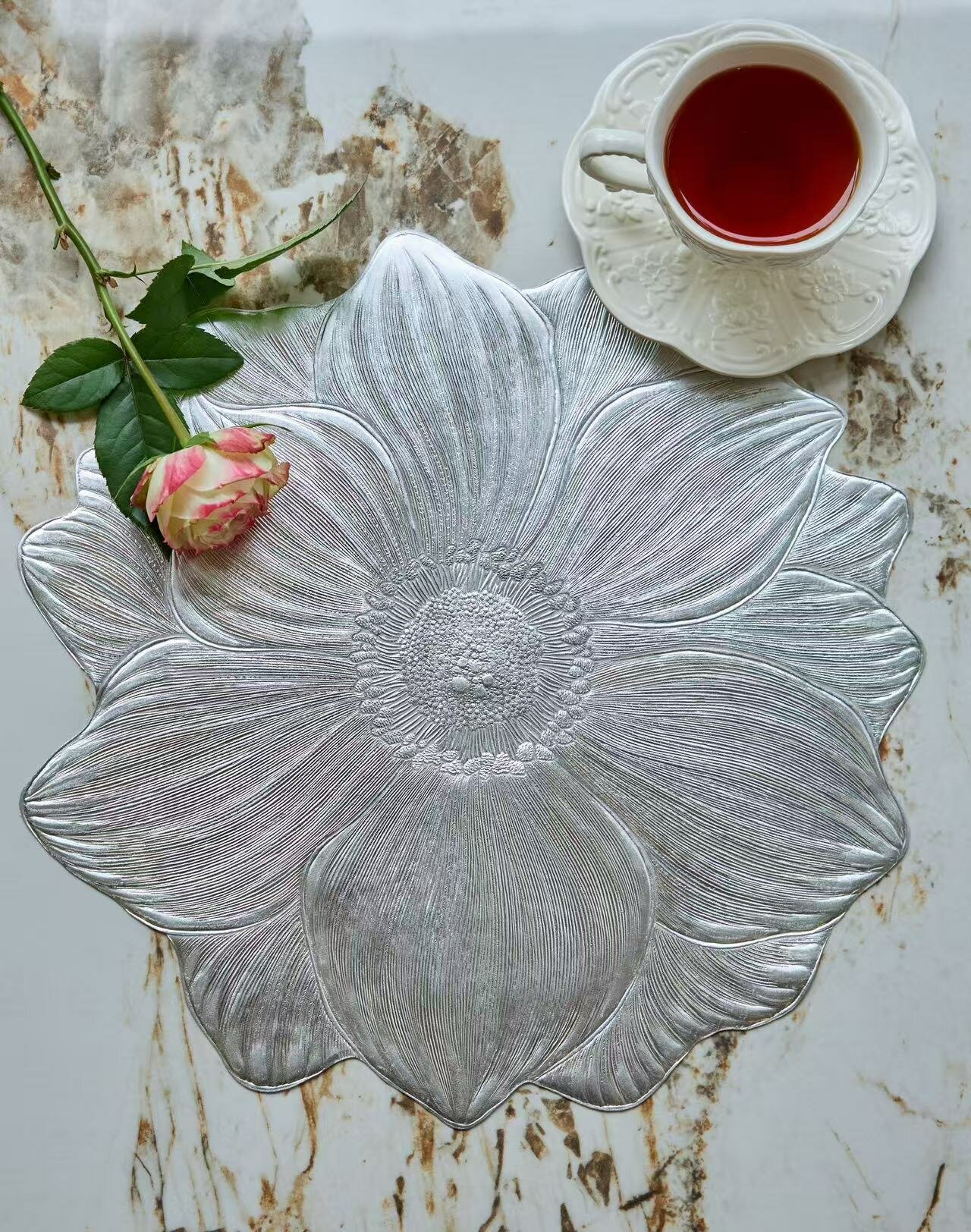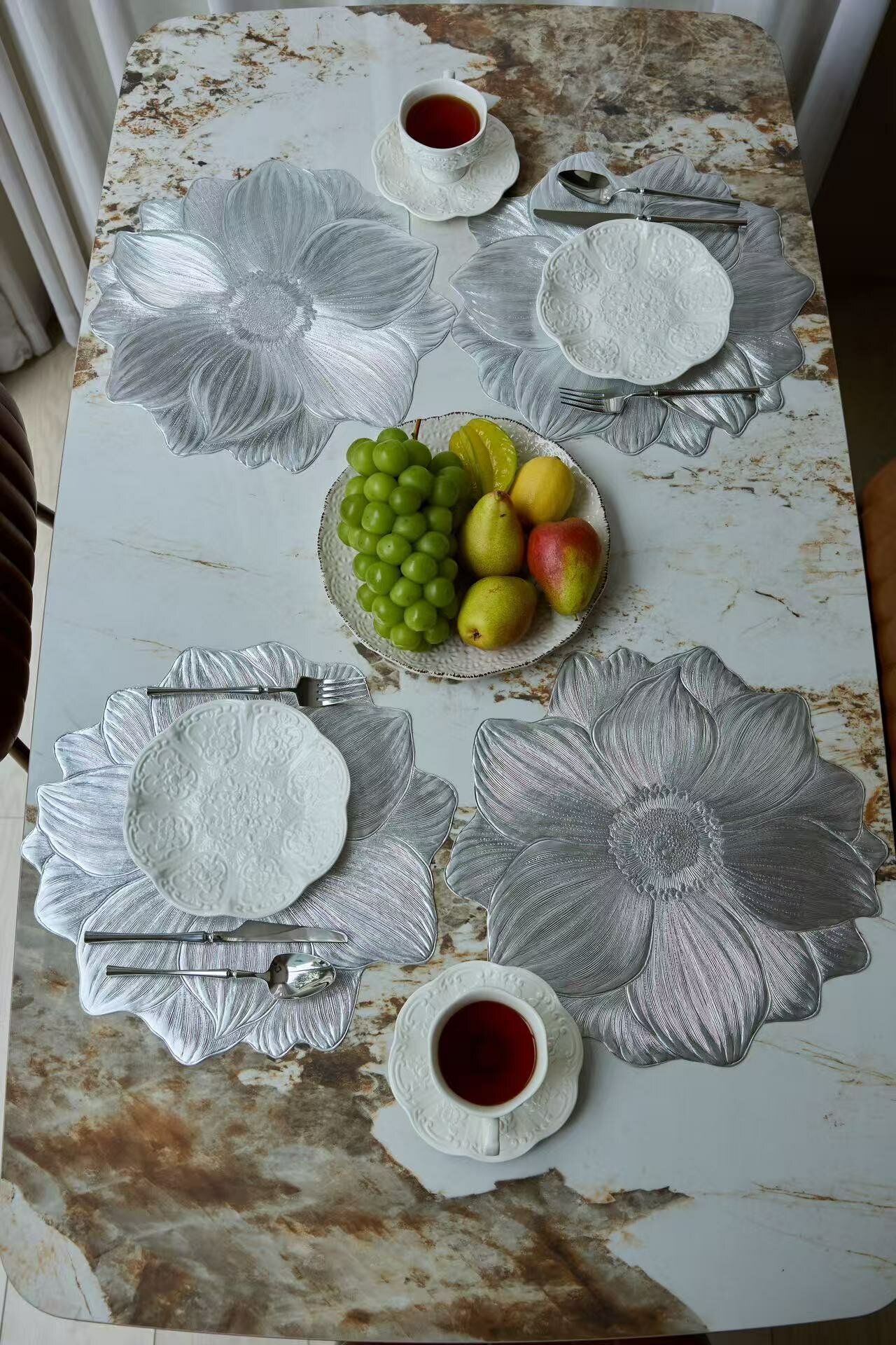 Набор сервировочных салфеток "Цветок" 4 штуки, серебро, D38см информация: