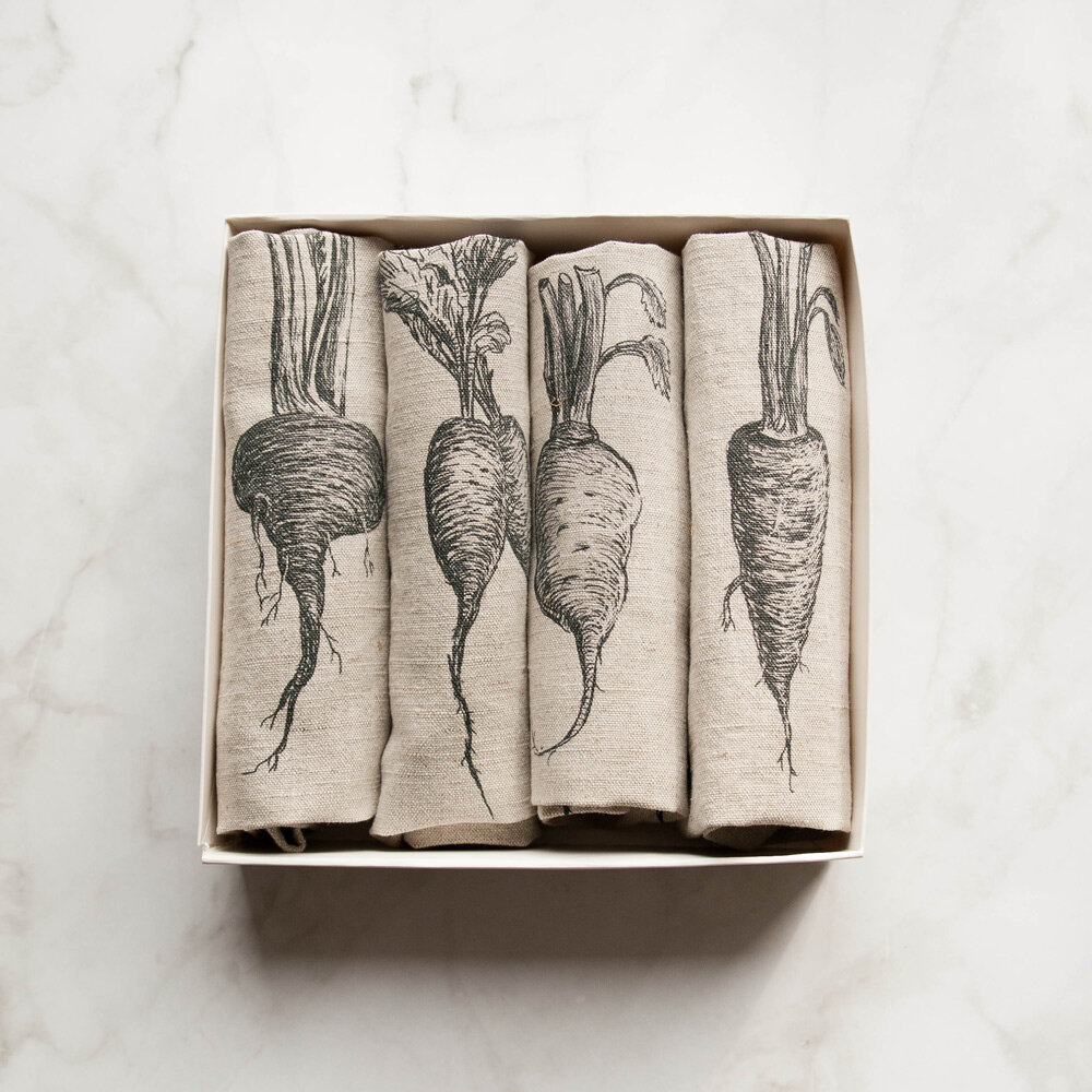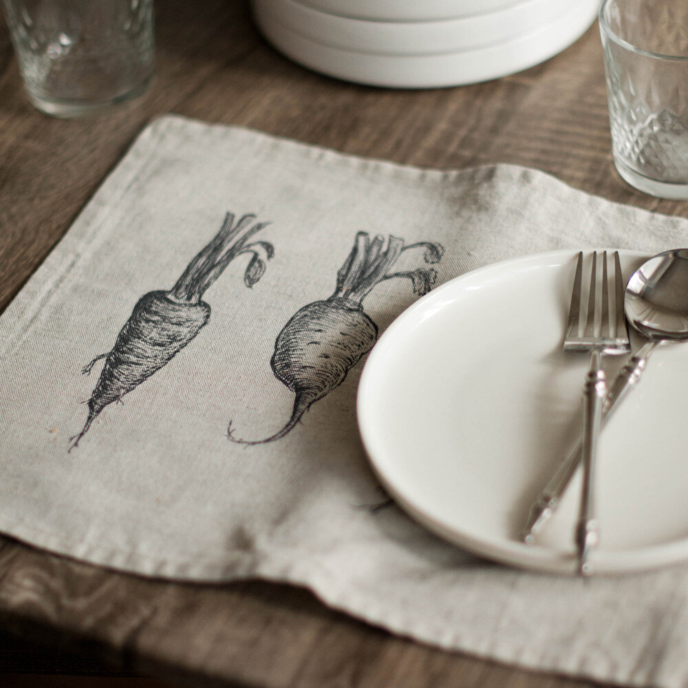 10 цен на Салфетки на стол с принтом "овощи", 4 штуки, 29x39 см, умягченный лен