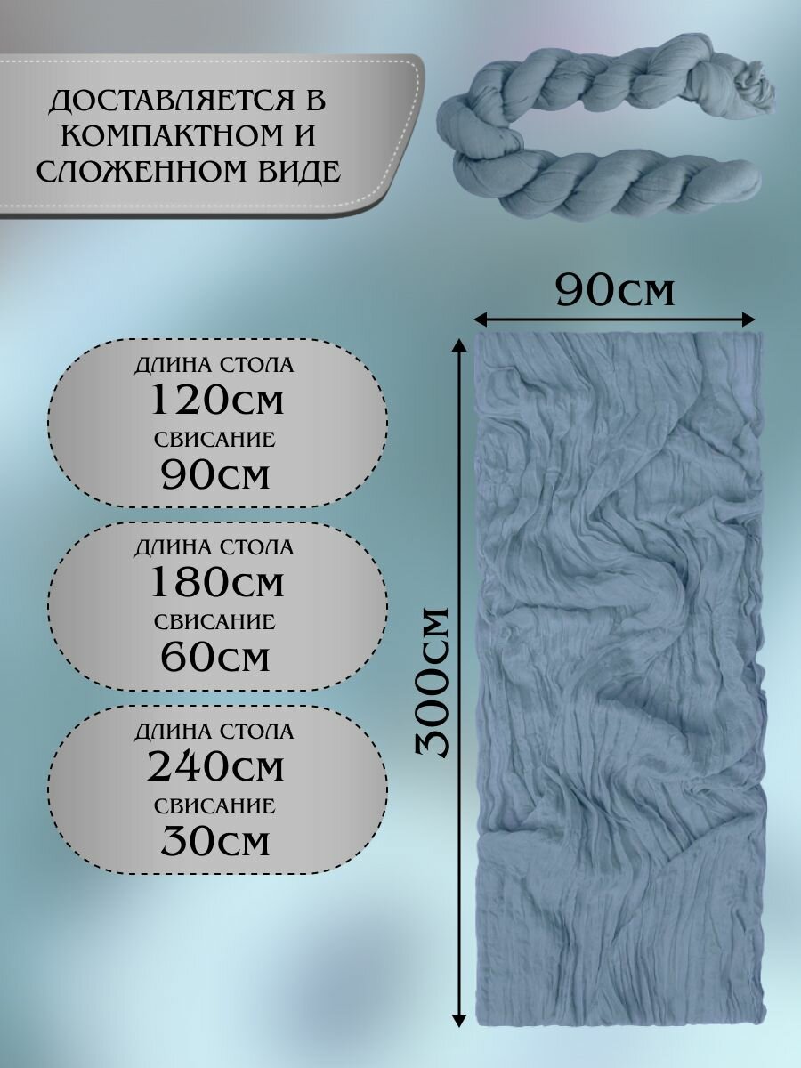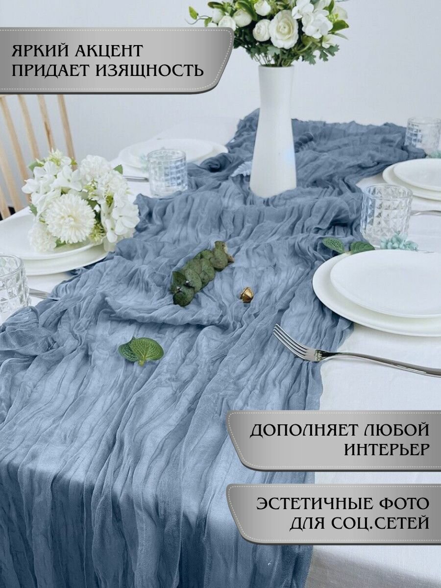 Скатерть-дорожка сервировочная на стол 90*300 см цвет голубой информация: