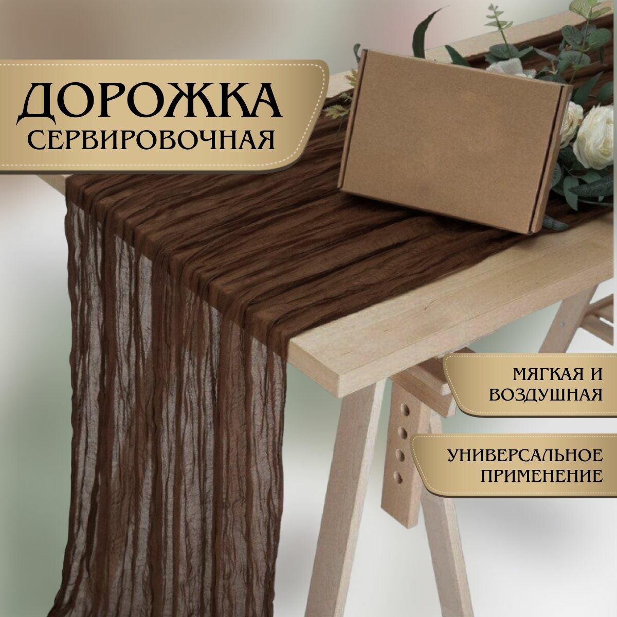 Отзывы на Скатерть-дорожка сервировочная на стол 90*300 см цвет темно-коричневый, шоколадный