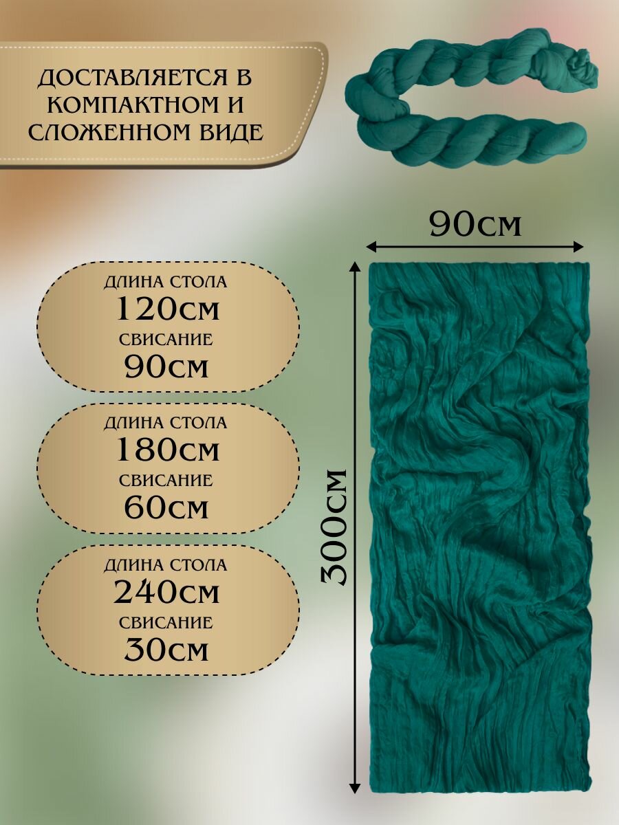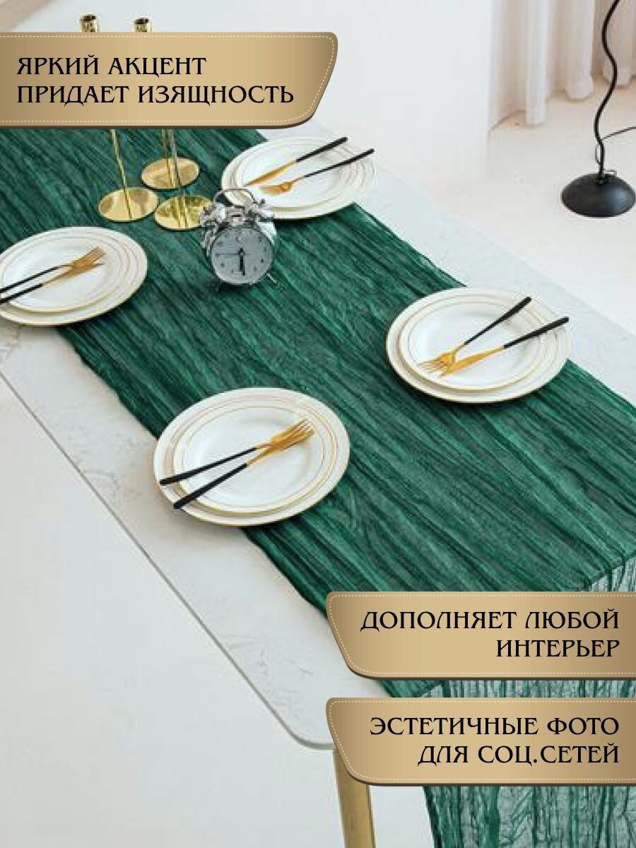 Скатерть-дорожка сервировочная на стол 90*300 см цвет темно-зеленый, изумрудный информация: