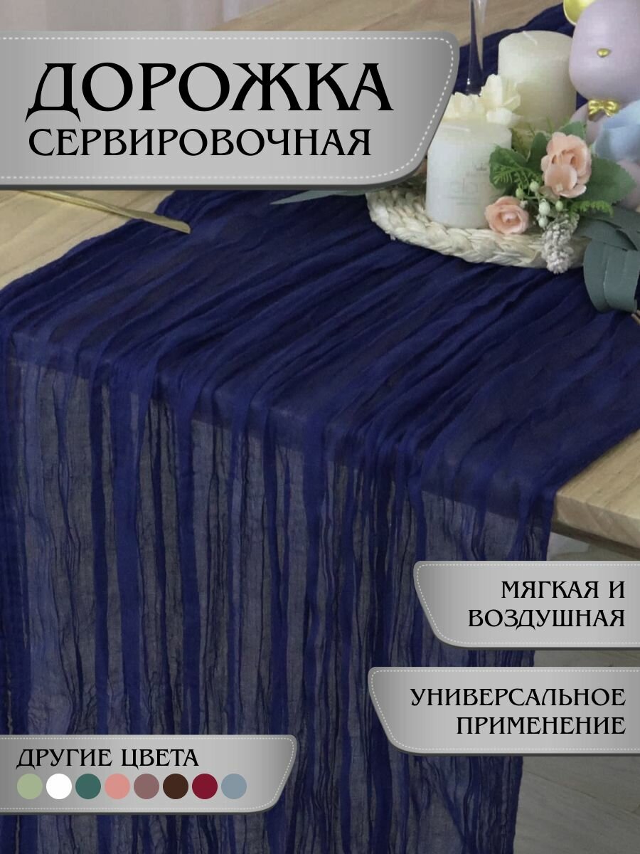 Скатерть-дорожка сервировочная на стол 90*300 см цвет темно-синий информация: