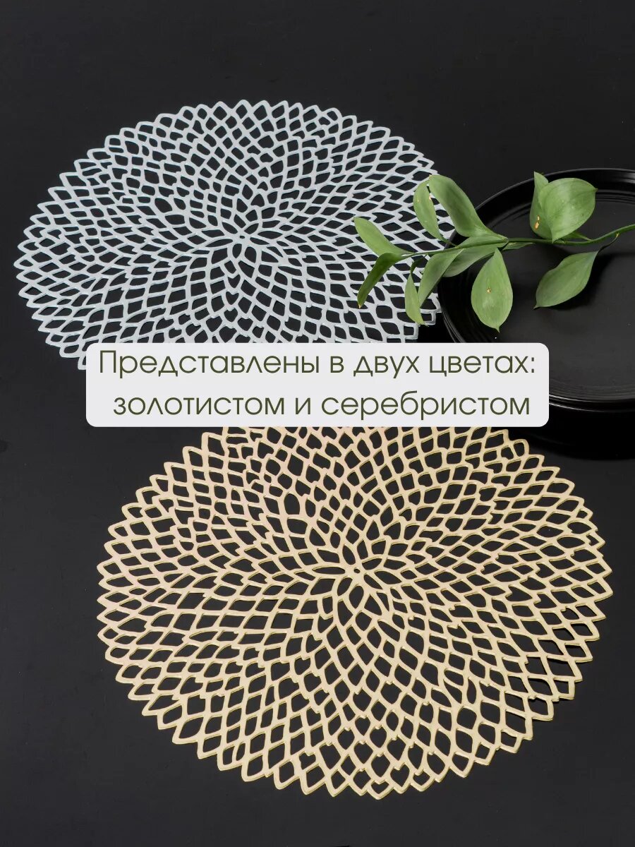 Сервировочные салфетки AROMAFLOW "Розы", ПВХ, термостойкие, 38 см, 4 шт, серебристые 650 ₽