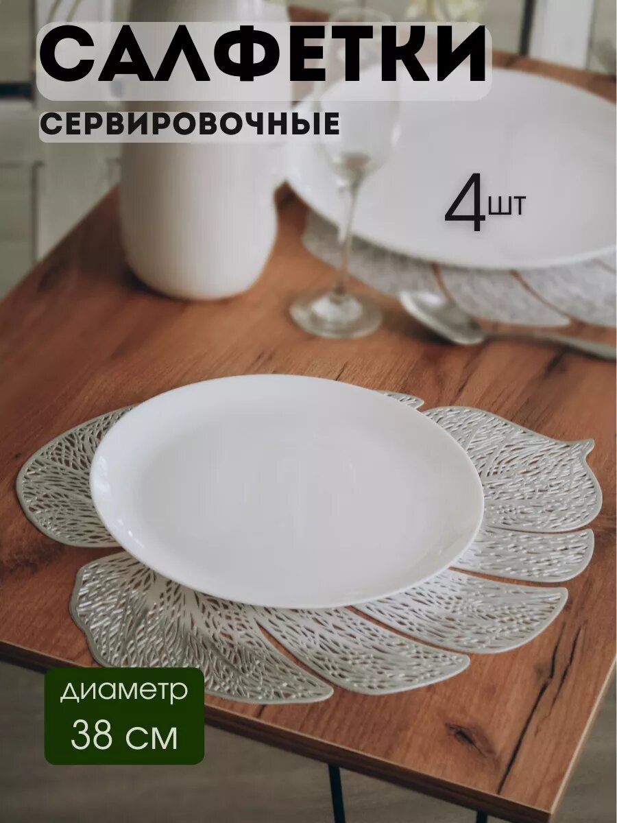 10 цен на Сервировочные салфетки AROMAFLOW "Лист монстеры", ПВХ, 38 см, 4 шт, серебристые
