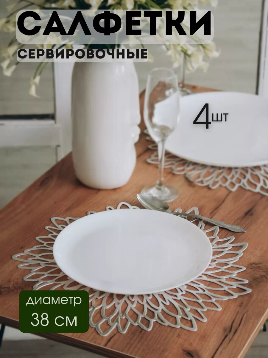 Сервировочные салфетки AROMAFLOW "Колос", ПВХ, серебристые, 38 см, 4 шт 650 ₽