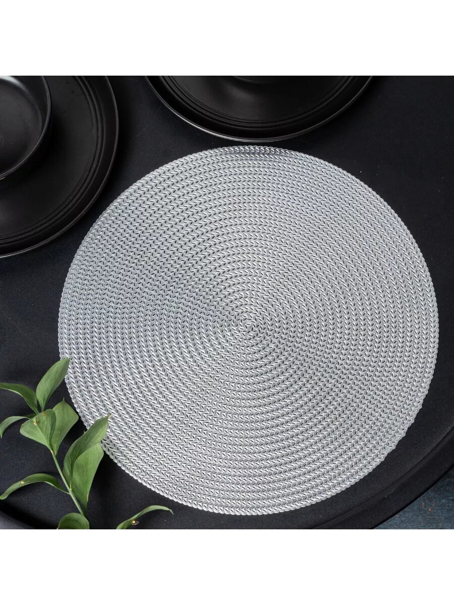 Сервировочные салфетки AROMAFLOW "Розы", ПВХ, термостойкие, 38 см, 4 шт, серебристые 650 ₽