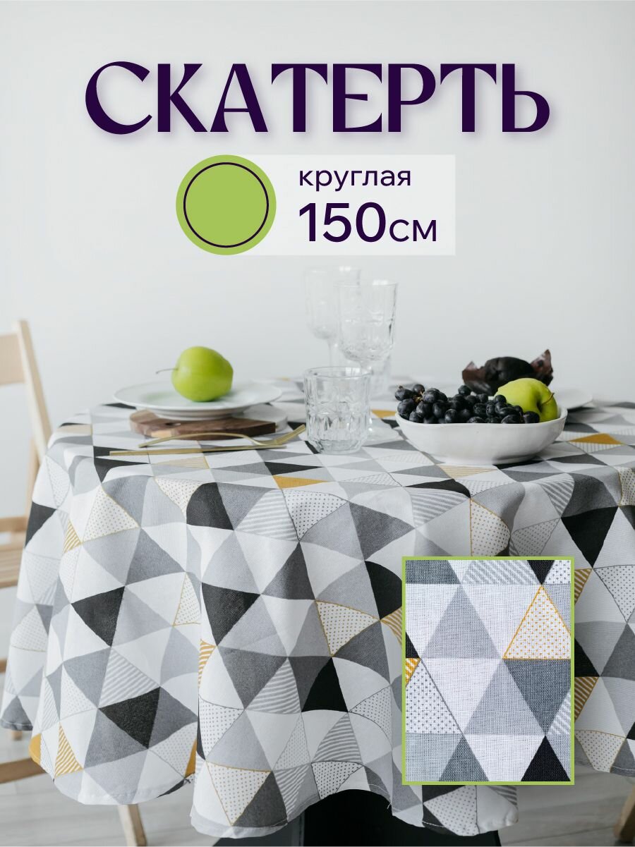 Скатерть тканевая круглая на стол из рогожки Рафаэлка, 150х150 см, хлопок 840 ₽