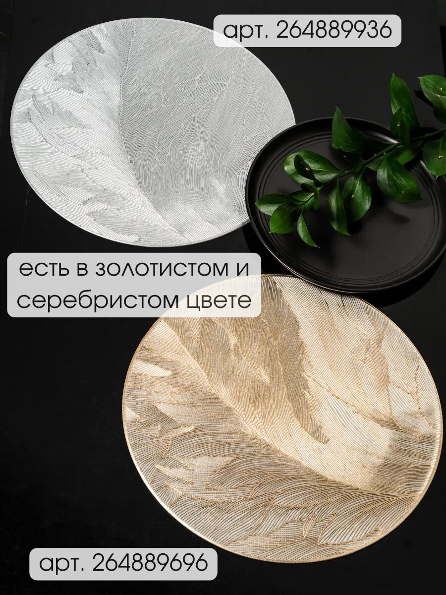 Сервировочные салфетки "Перья" AROMAFLOW, ажурный узор, ПВХ, 2 шт, диаметр 38 см, золотистый 399 ₽