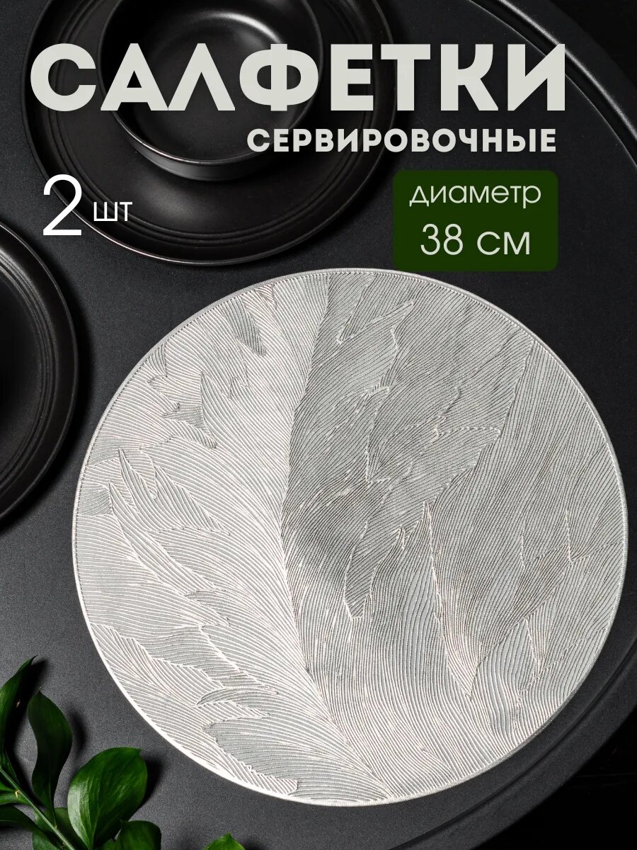 Сервировочные салфетки "Перья" AROMAFLOW, ПВХ, мрамор, 38 см, 2шт, серебристые информация: