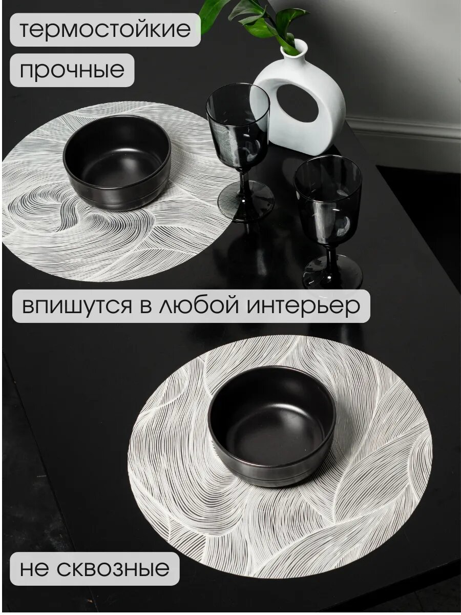 Сервировочные салфетки AROMAFLOW "На пленке", ПВХ, черные, круглые, 38 см, 2 шт 399 ₽