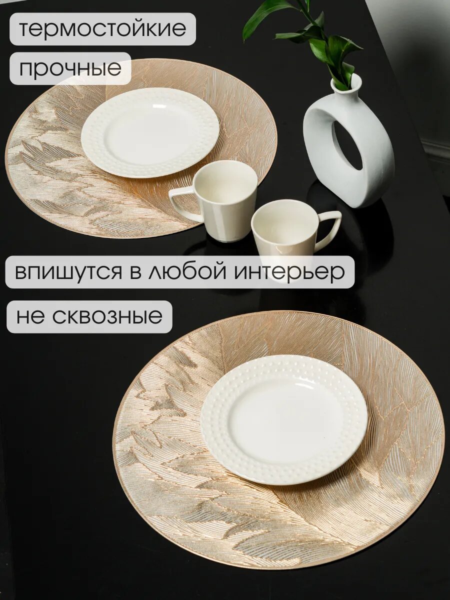 Отзывы на Сервировочные салфетки "Перья" AROMAFLOW, ажурный узор, ПВХ, 2 шт, диаметр 38 см, золотистый