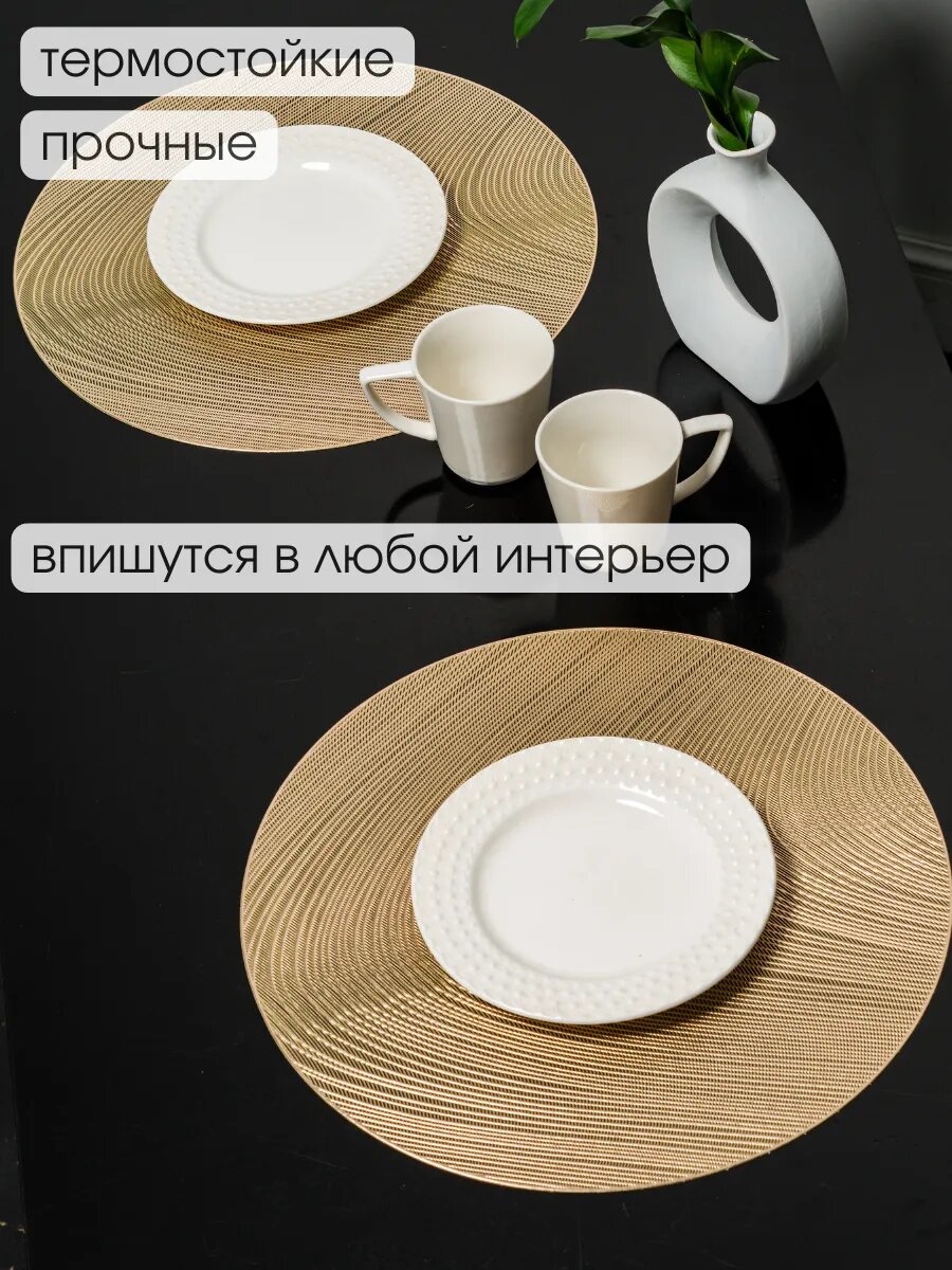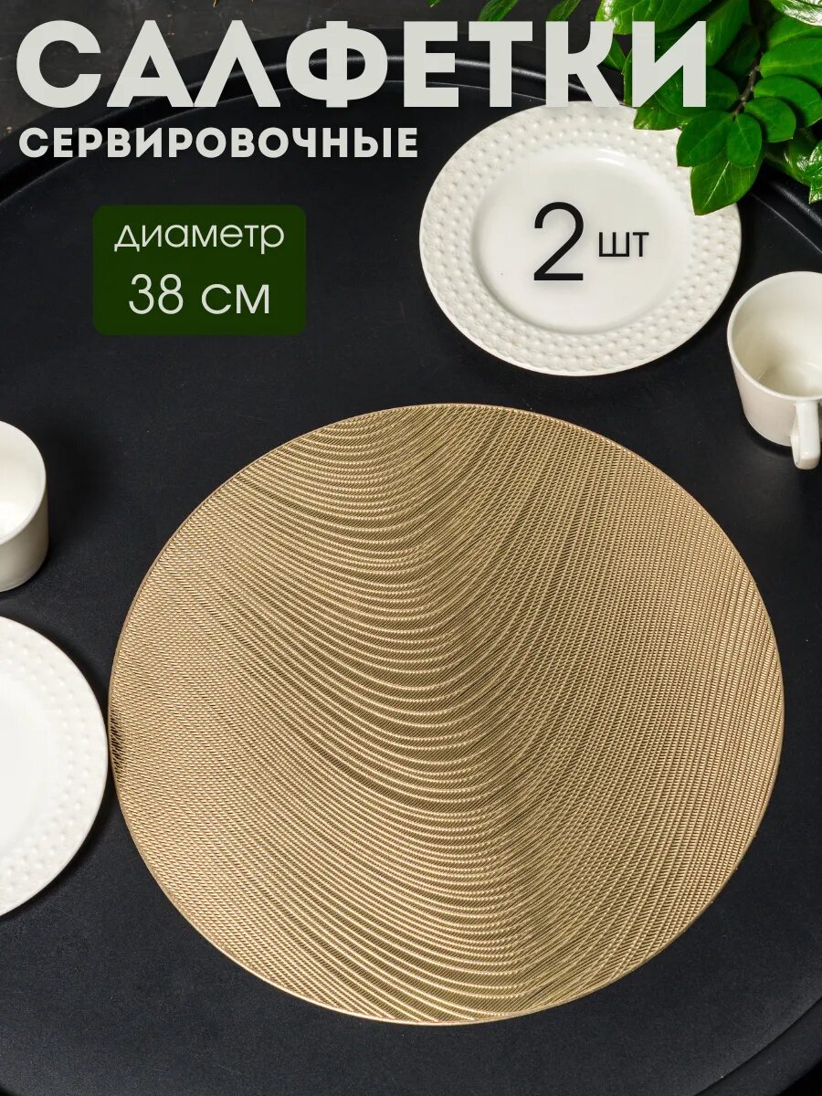 Сервировочные салфетки "Перья" AROMAFLOW, ажурный узор, ПВХ, 2 шт, диаметр 38 см, золотистый 399 ₽