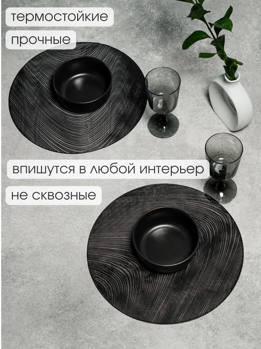 Сервировочные салфетки AROMAFLOW "На пленке", ПВХ, черные, круглые, 38 см, 2 шт 399 ₽