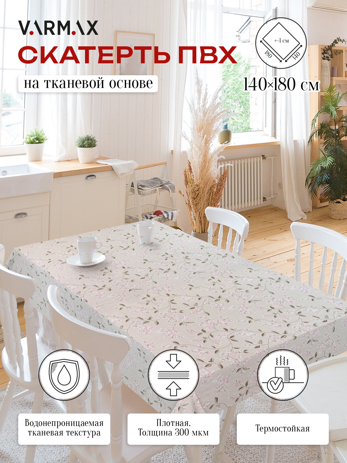 Отзывы на R1088-1-180 Скатерть VARMAX, пвх на тканевой основе, размер 140х180см