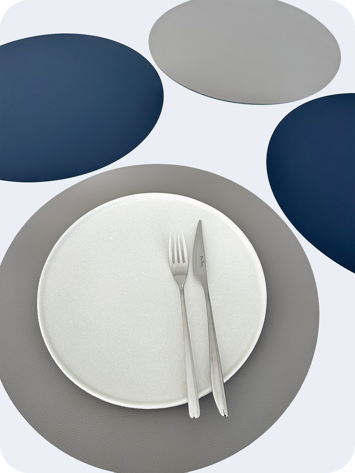 Салфетки для сервировки стола круглые / 4 шт. св серые/синий / Набор сервировочных салфеток / Двусторонние салфетки / Плейсматы информация: