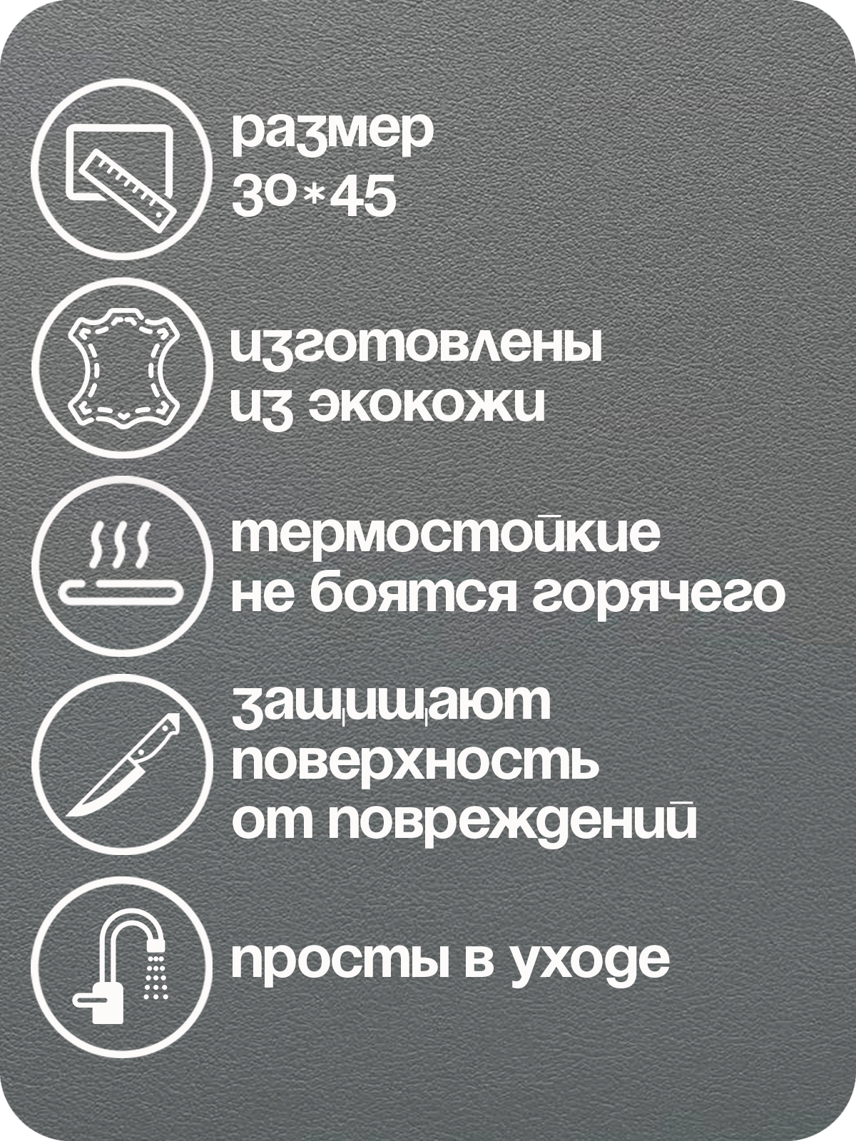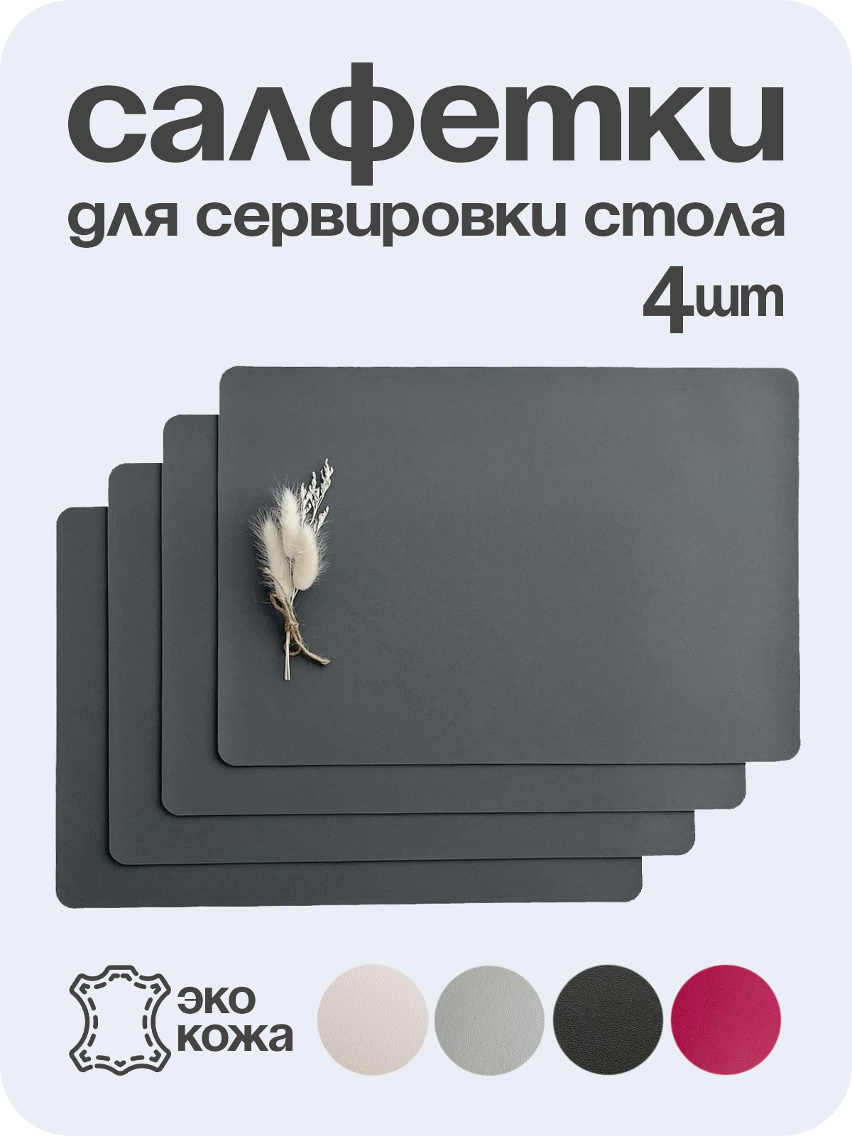 Салфетки для сервировки стола прямоугольные / 4 шт. Темно-серый / Набор сервировочных салфеток / Двусторонние салфетки / Плейсматы информация: