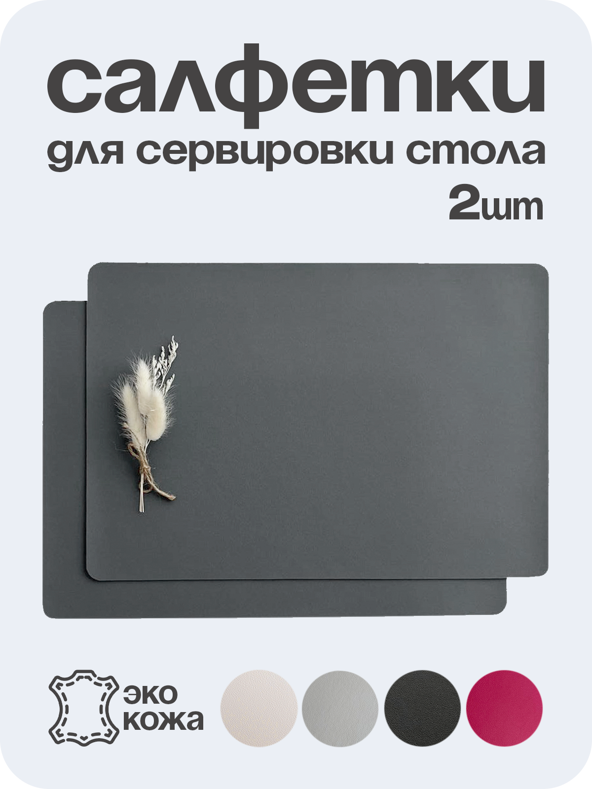 Салфетки для сервировки стола прямоугольные / 2 шт. Темно-серый / Набор сервировочных салфеток / Двусторонние салфетки / Плейсматы информация: