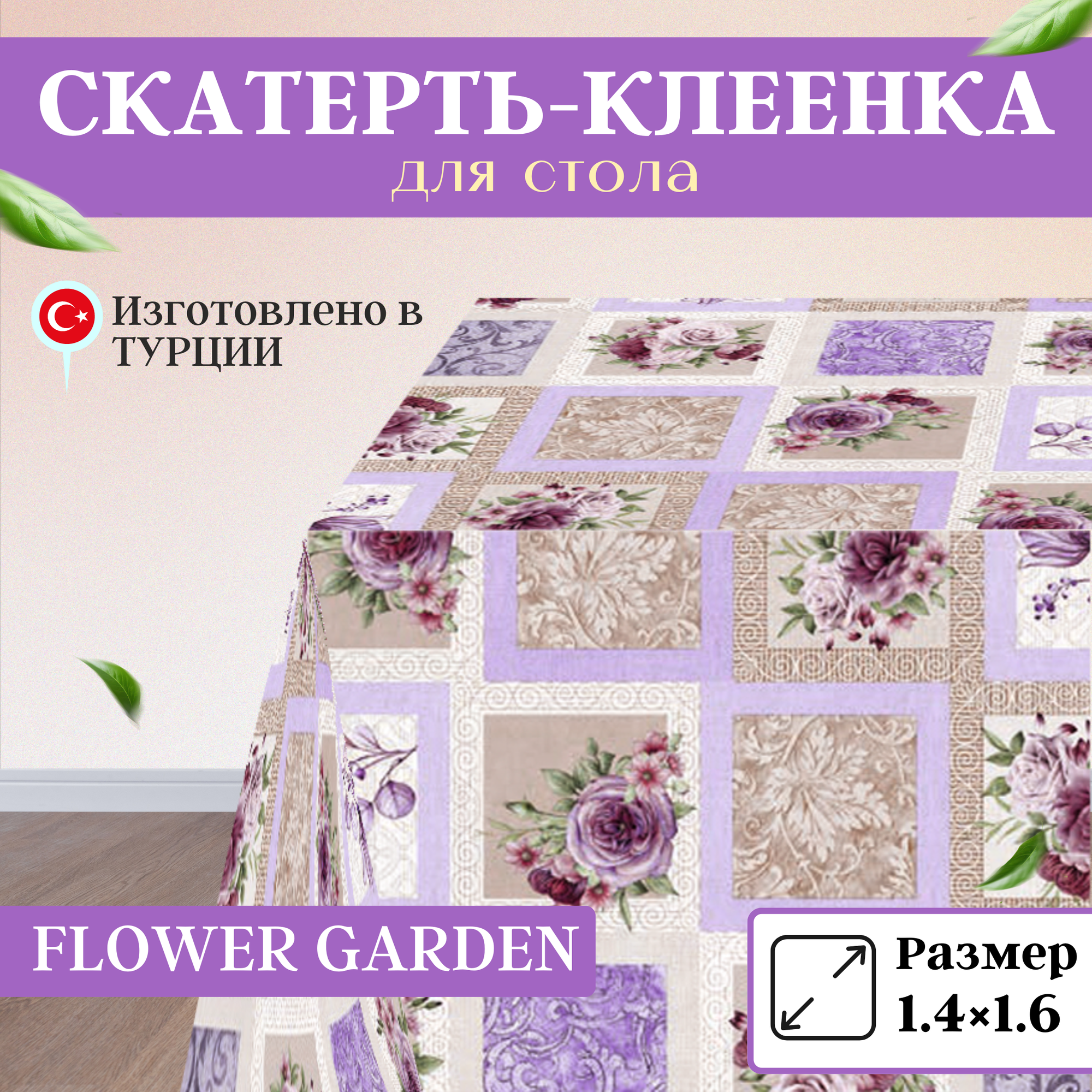 Скатерть, клеенка на стол Florista 140x160, FLOWER GARDEN-цветочный сад информация: