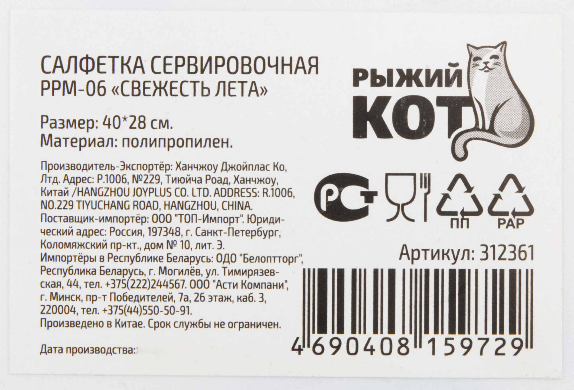 Мы выбрали 10 лучших цен на Салфетка сервировочная Свежесть лета ,"Рыжий Кот" PPM-06, 40 х 28 см, материал: пластик. Перед тем как купить Салфетка сервировочная Свежесть лета ,"Рыжий Кот" PPM-06, 40 х 28 см, материал: пластик посмотрите найденные предложения из Яндекс Маркета и других сайтов на основе XML фидов.