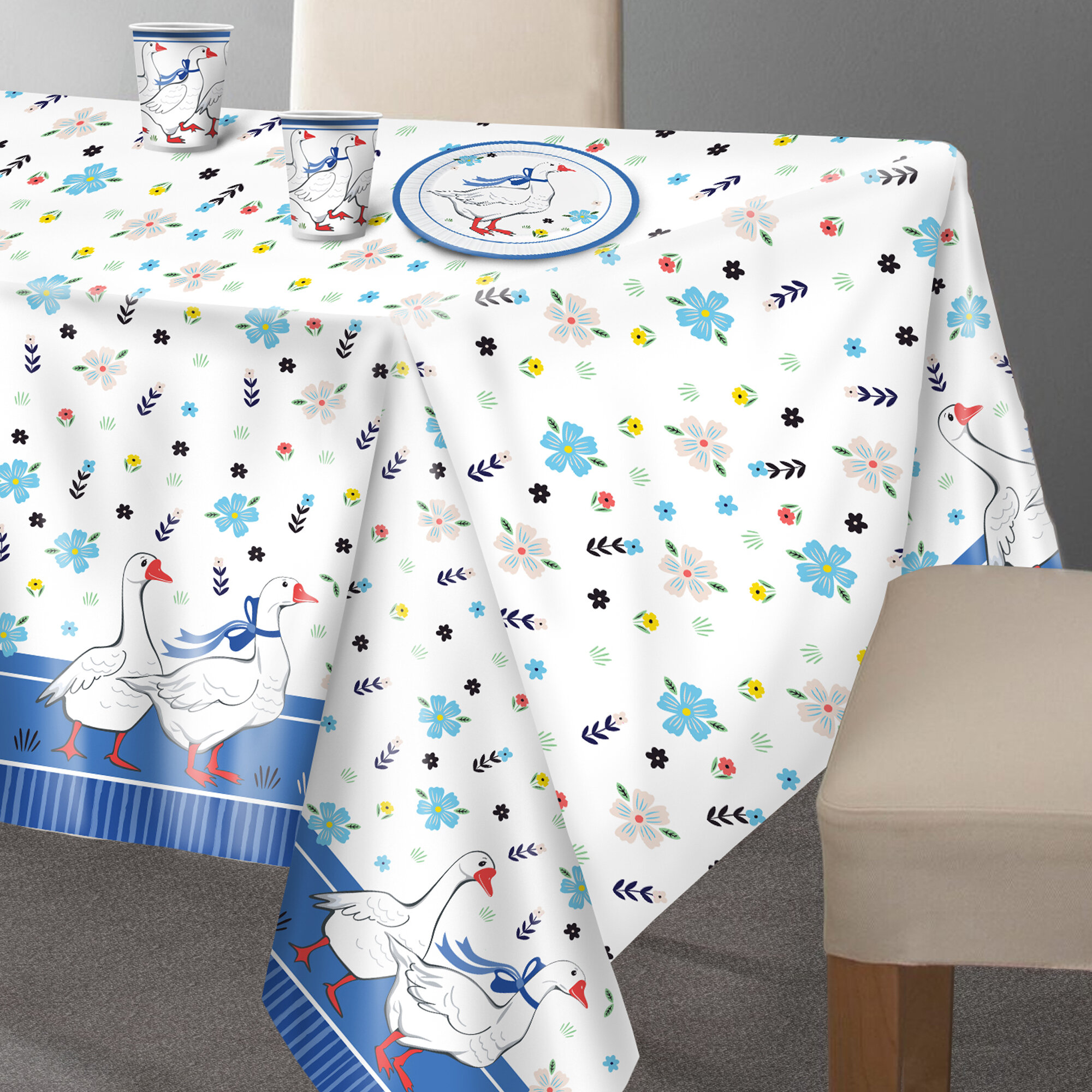 10 цен на Одноразовая скатерть для праздника, полиэтилен, Гуси-1, 120*180 см