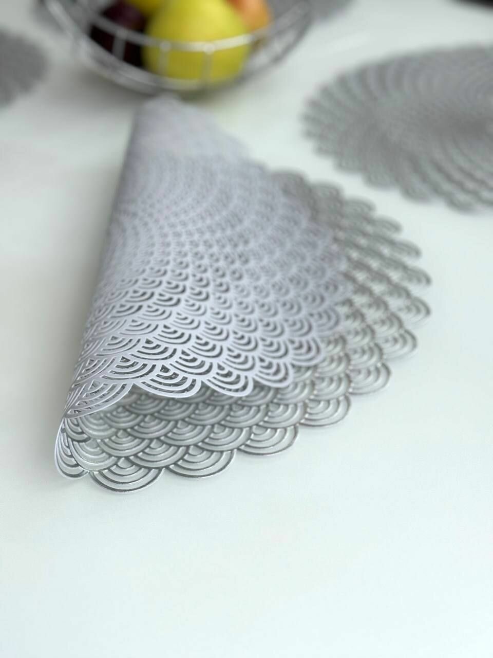 Салфетки для сервировки стола Ажурное серебро, 4 шт, круглые, диаметр 38 см. Подставка под тарелки сервировочные из ПВХ. Набор плейсматов 750 ₽
