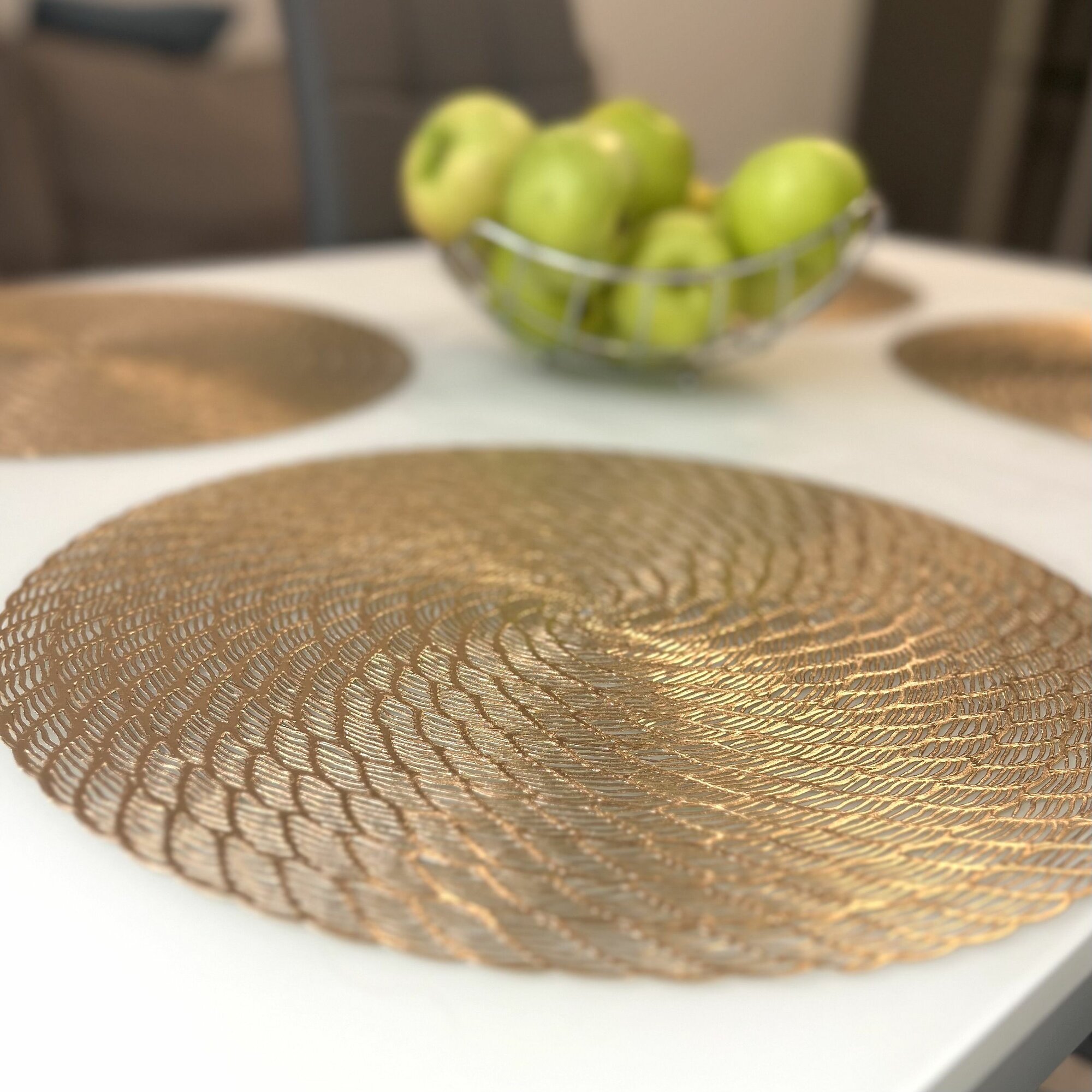Салфетки для сервировки стола Гнездо золото, 4 шт, круглые, диаметр 38 см. Подставка под тарелки сервировочные из ПВХ. Набор плейсматов 720 ₽
