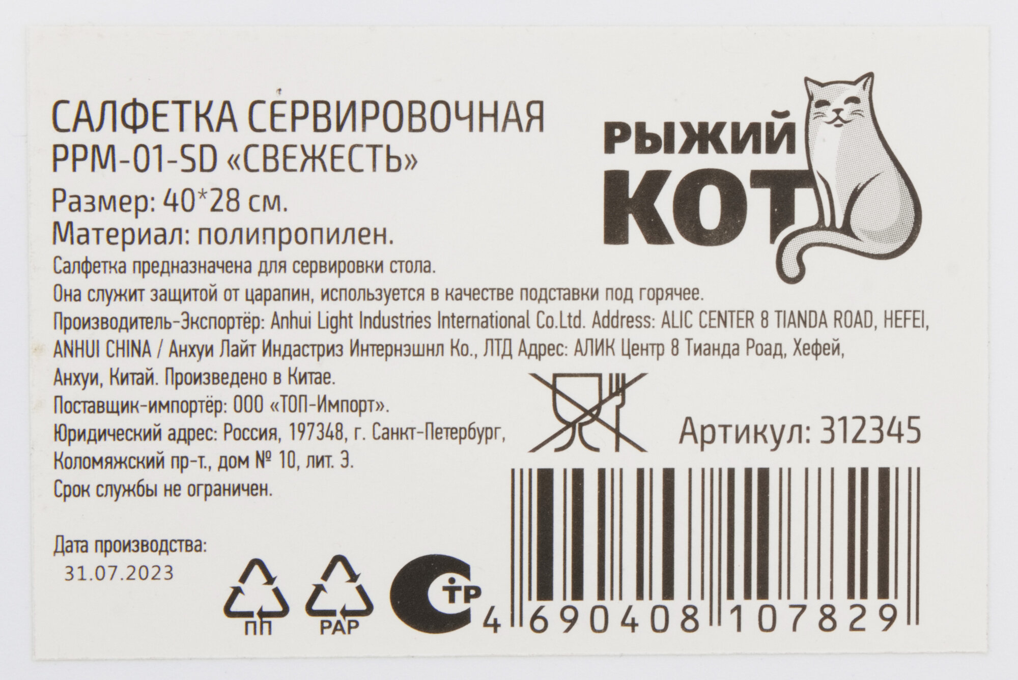 Салфетка сервировочная Свежесть, "Рыжий Кот" PPM-01-SD, пластик, 40 х 28 см информация: