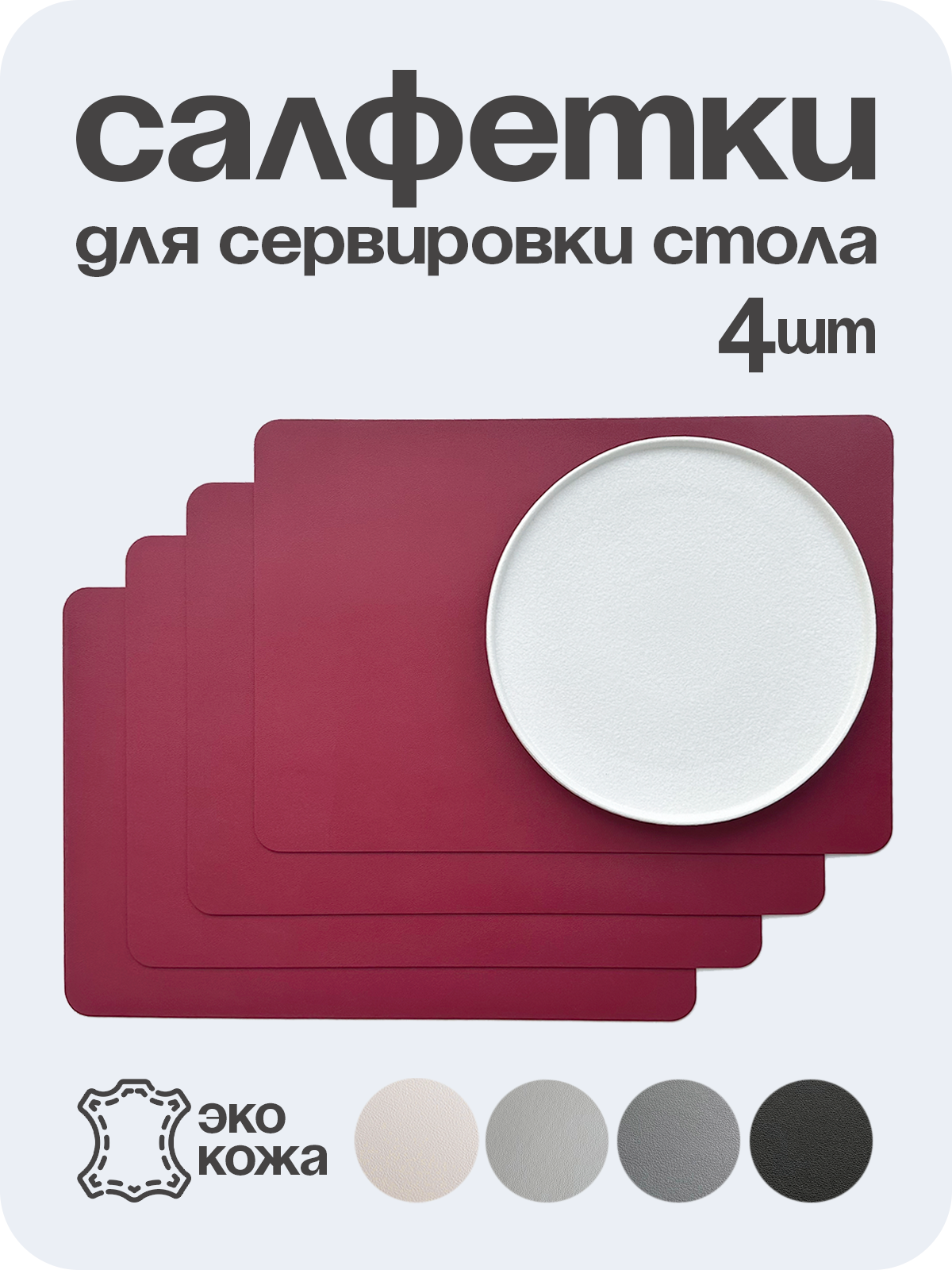 Салфетка для сервировки стола прямоугольные / 4 шт. Бордовый / Набор сервировочных салфеток / Двусторонние салфетки / Плейсматы информация:
