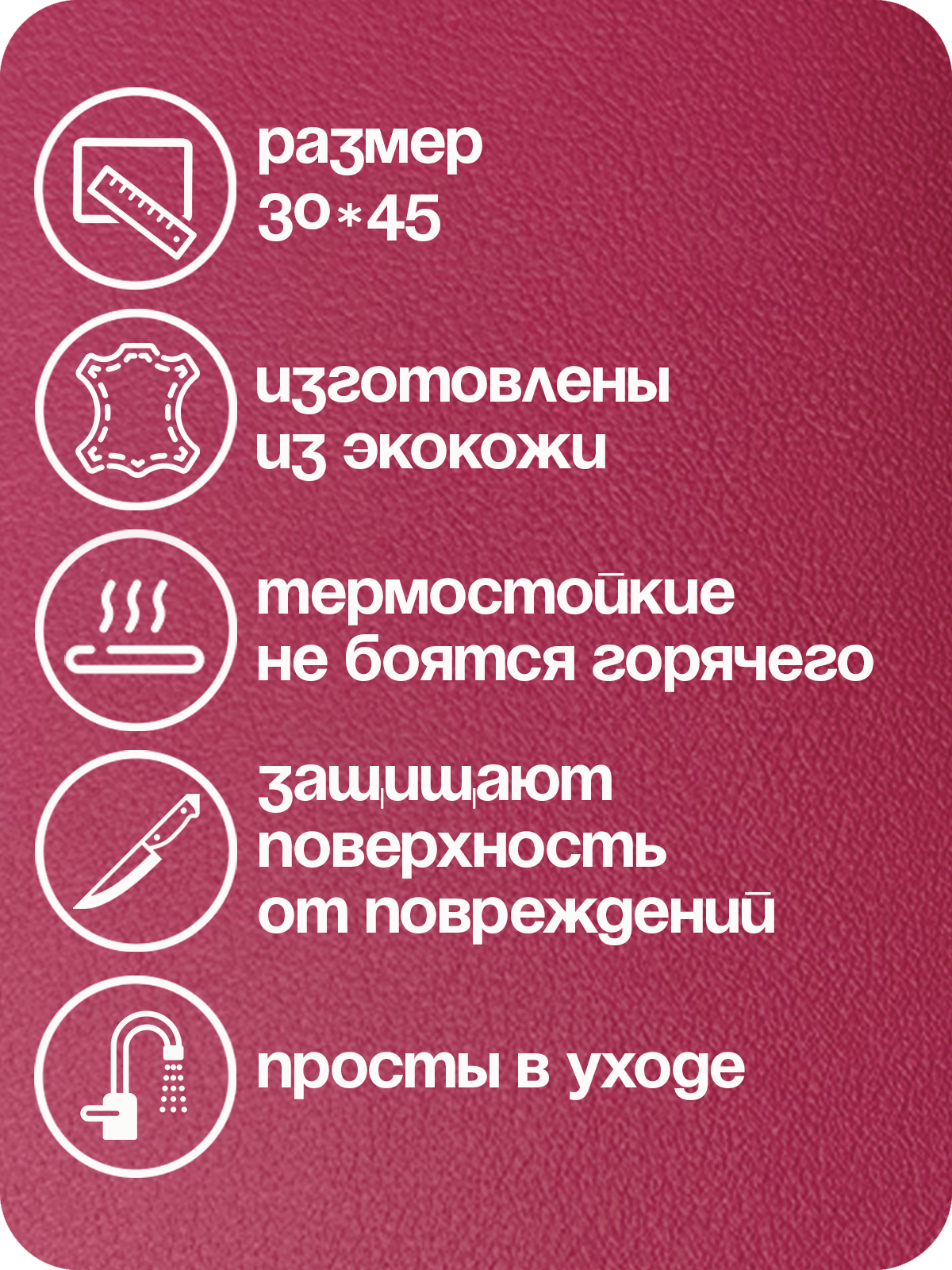 Салфетки для сервировки стола прямоугольные / 2 шт. Бордовый / Набор сервировочных салфеток / Двусторонние салфетки / Плейсматы 790 ₽