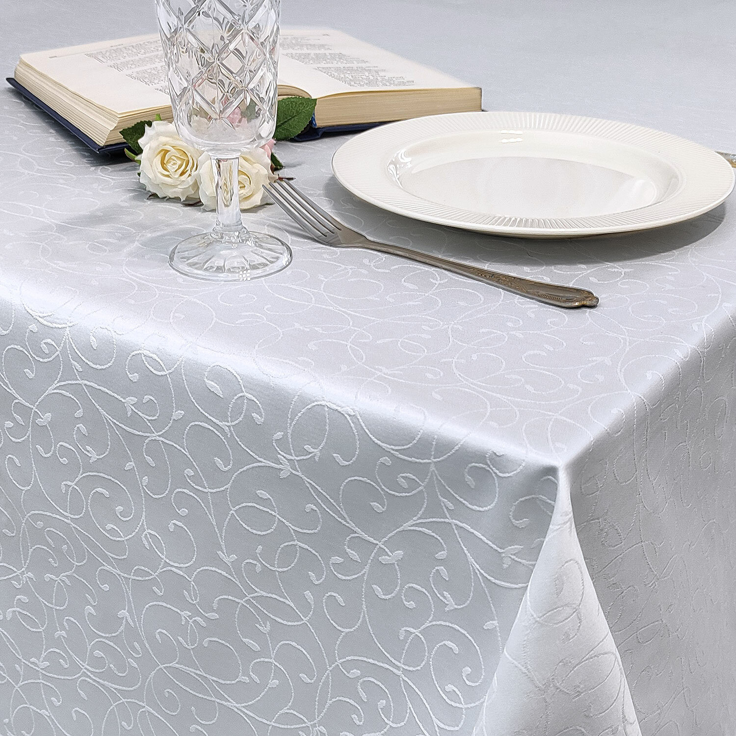 Скатерть 145x280 см. цвет белый узор 1812 тонкий завиток с пропиткой от загрязнений 3 248 ₽