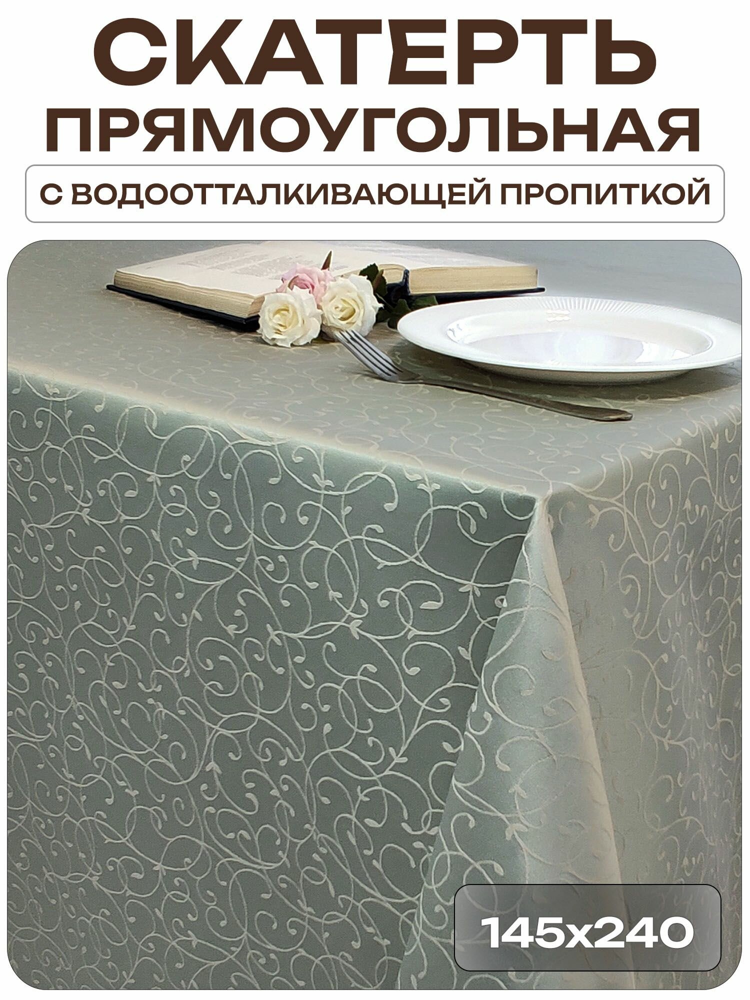Скатерть 145x240 см. цвет серо-бежевый узор 1812 тонкий завиток с пропиткой от загрязнений информация: