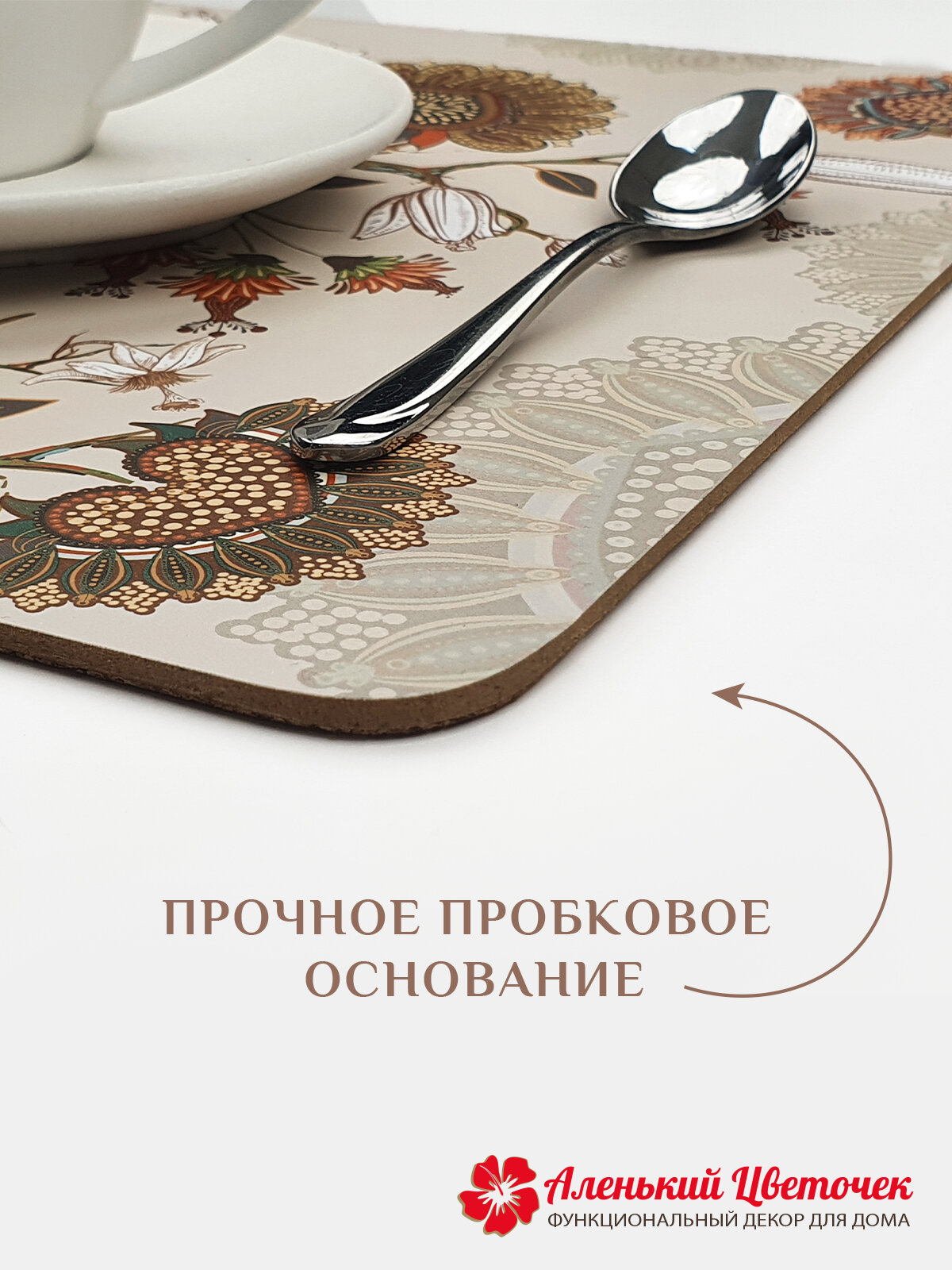 Салфетки на стол сервировочные "Цветущий сад", пробка, 28x38 см, 4 штуки информация: