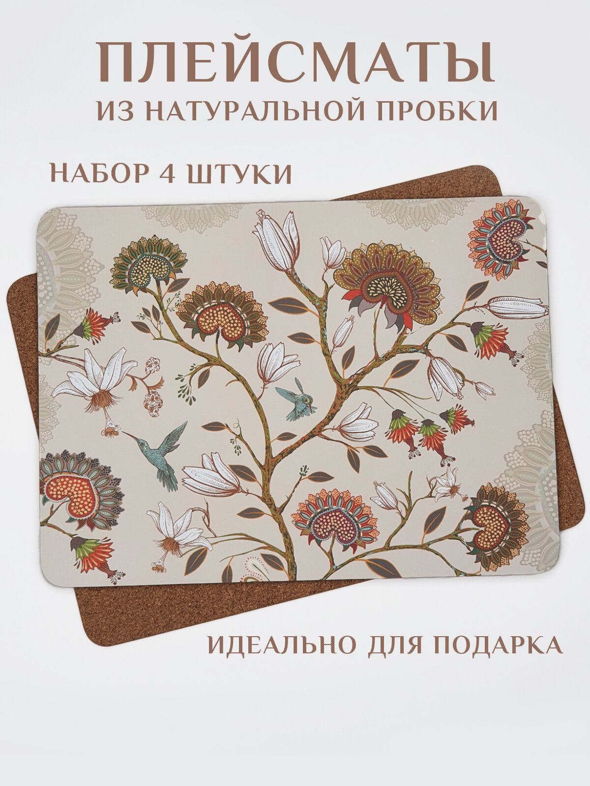 10 цен на Салфетки на стол сервировочные "Цветущий сад", пробка, 28x38 см, 4 штуки