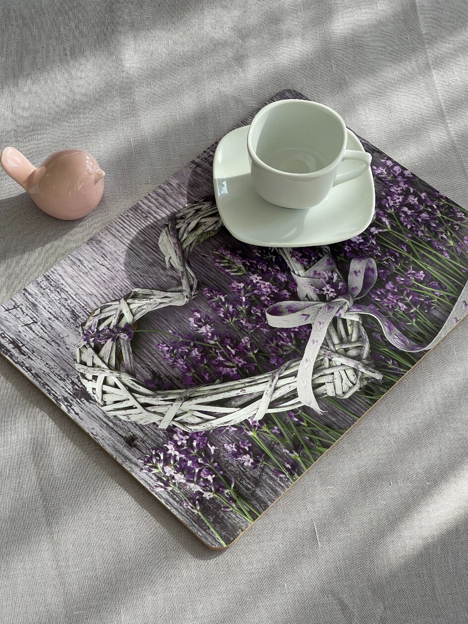 10 цен на Салфетки на стол сервировочные "Лавандовое сердце", пробка, 28x38 см, 4 штуки