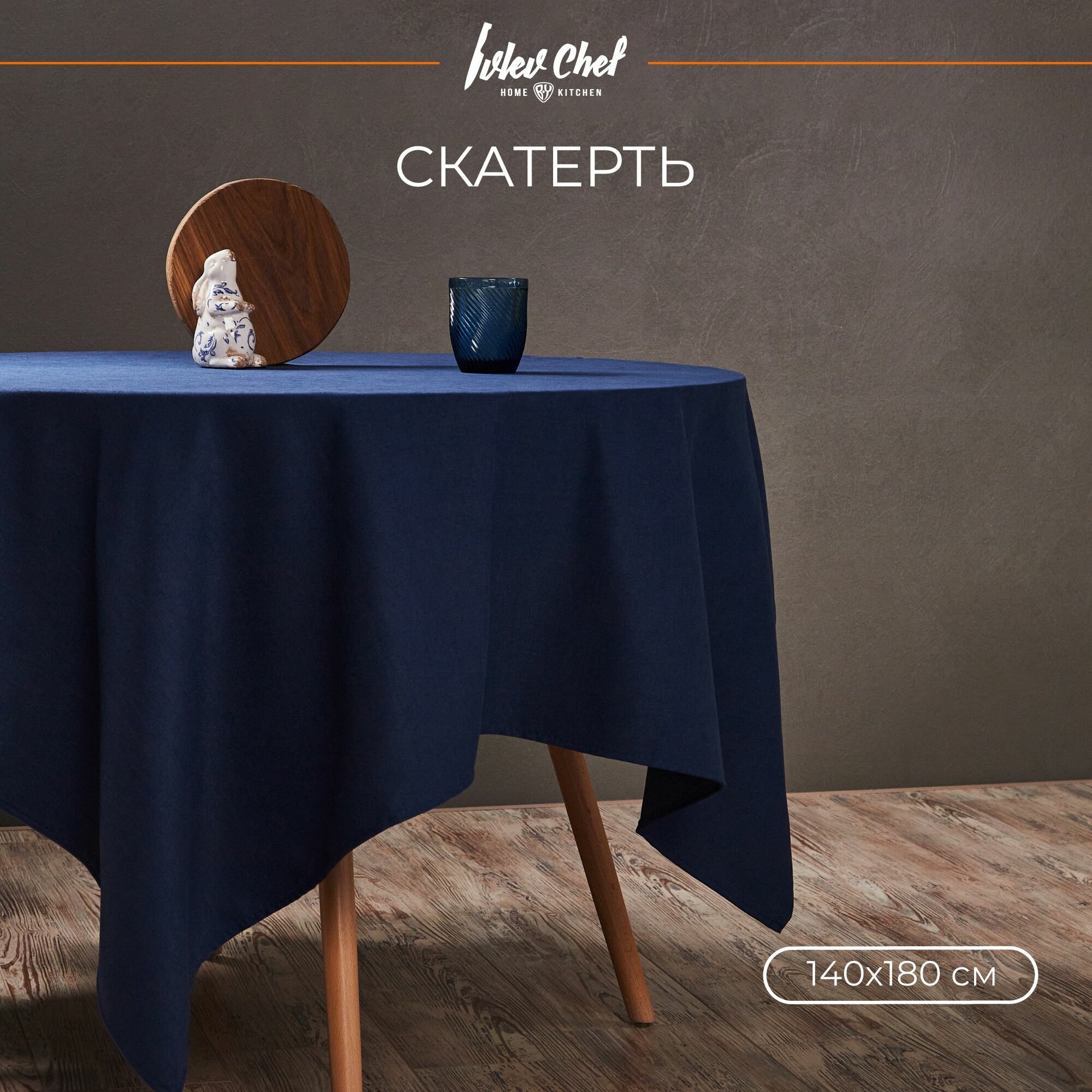 Скатерть Ivlev Chef с водоотталкивающей пропиткой 140x180 см, синий информация: