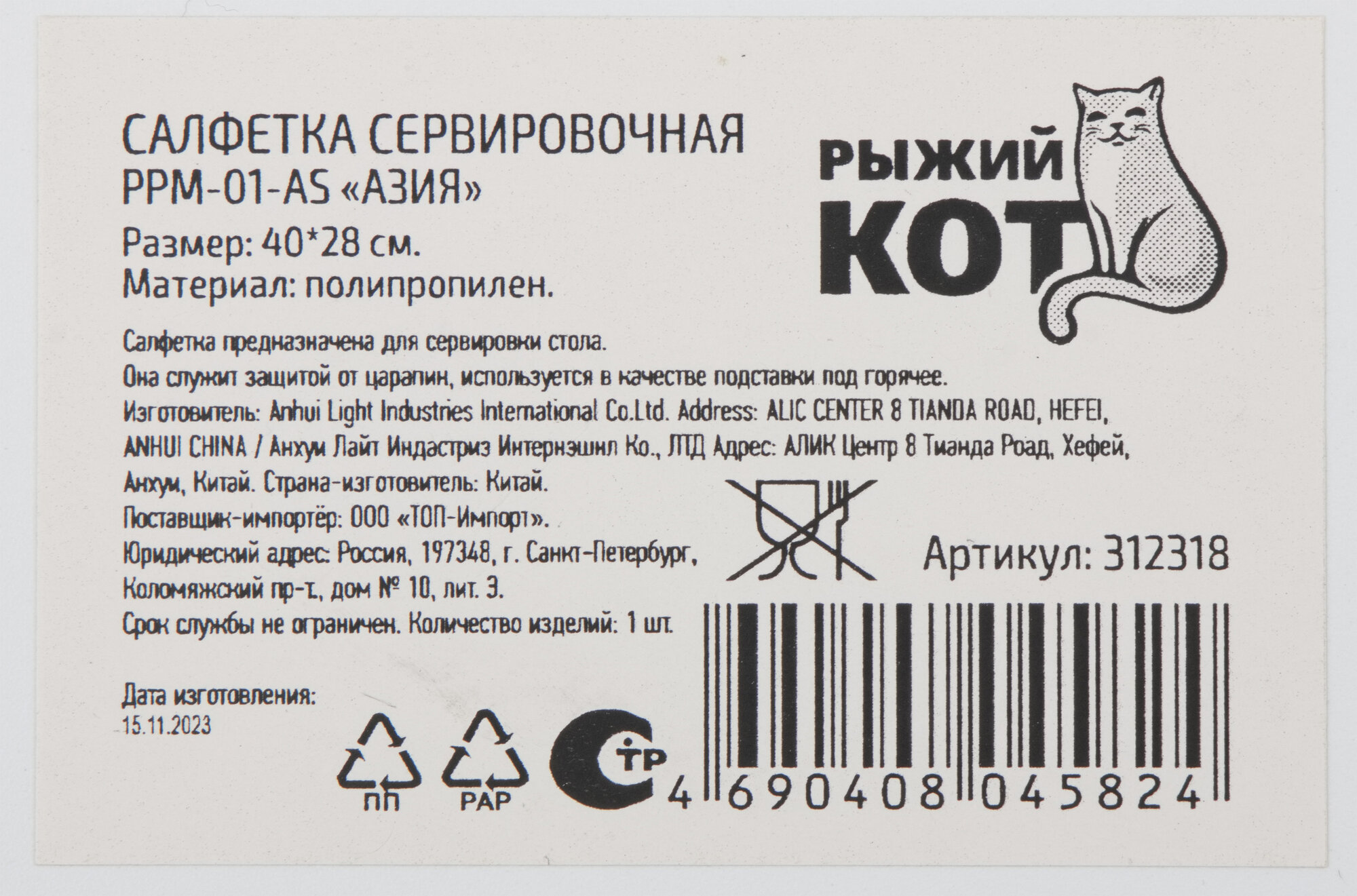 Отзывы на Салфетка сервировочная Азия, "Рыжий Кот" PPM-01-AS, 40 х 28 см, материал: пластик