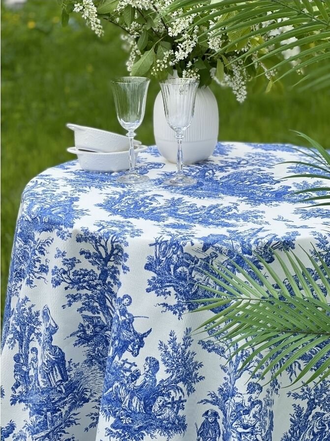 Отзывы на Скатерть текстильная водоотталкивающая Туаль де Жуи Цвет кремовый синий 140*170см