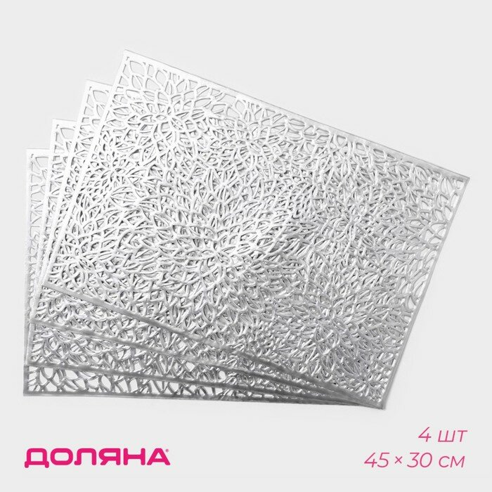 10 цен на Набор салфеток сервировочных на стол Доляна «Астра», 45×30 см, 4 шт, цвет серебро, 9912933