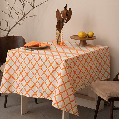 Скатерть декоративная Радушная хозяйка (Традиция) 145х180, рогожка, 100 % хлопок, Клетка абрикос 1 209 ₽