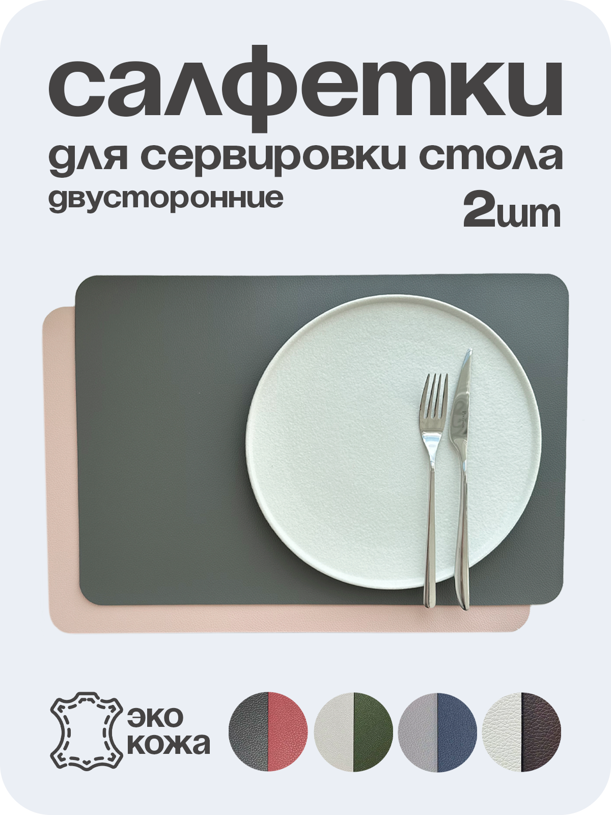 Салфетки для сервировки стола прямоугольные / 2шт. тёмно-серый/розовый / Набор сервировочных салфеток / Двусторонние салфетки / Плейсматы информация: