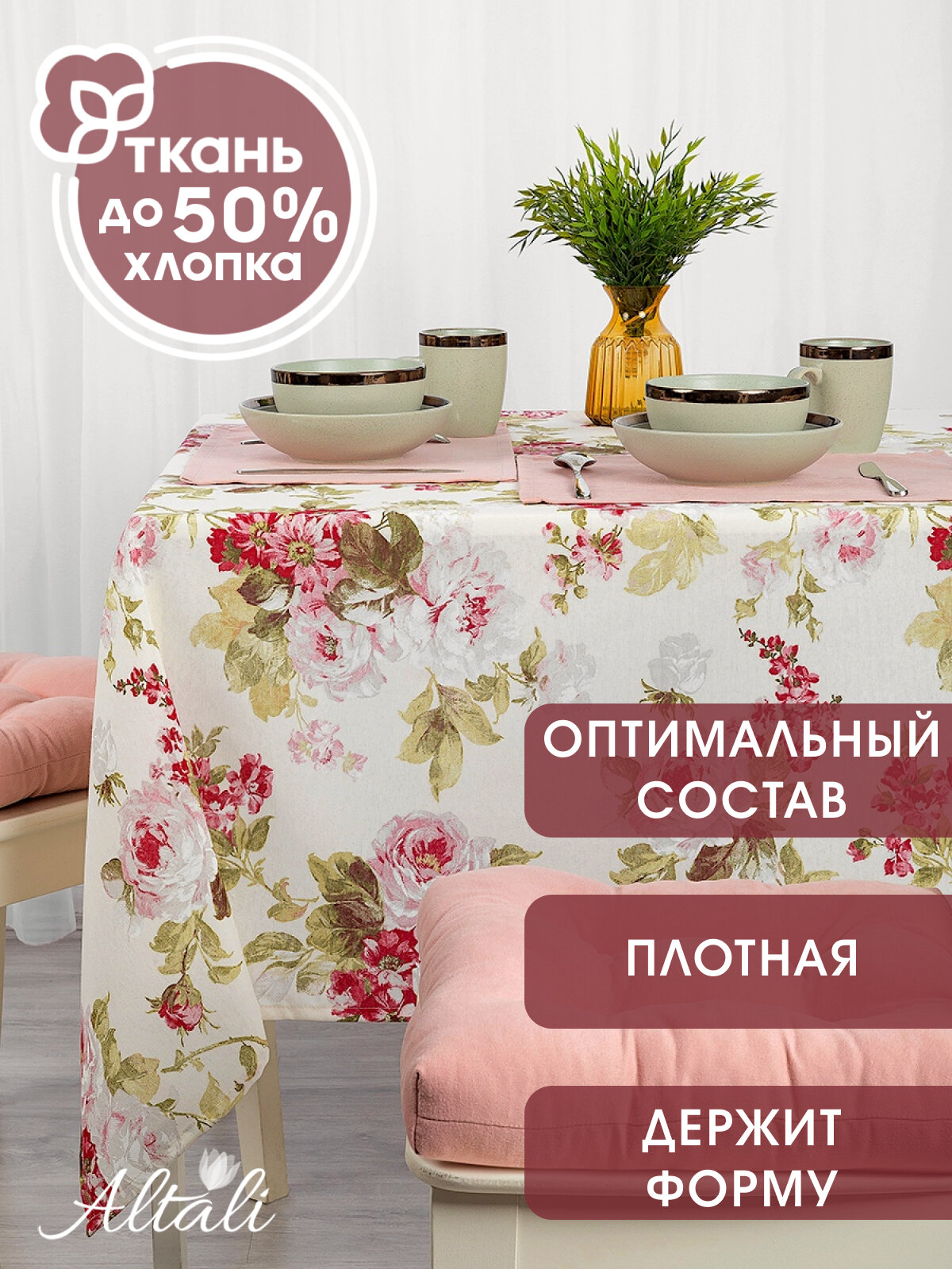 Отзывы на Скатерть кухонная прямоугольная на стол 136х170 Верона /Ткань хлопок/полиэстер для кухни, дома, дачи /Altali