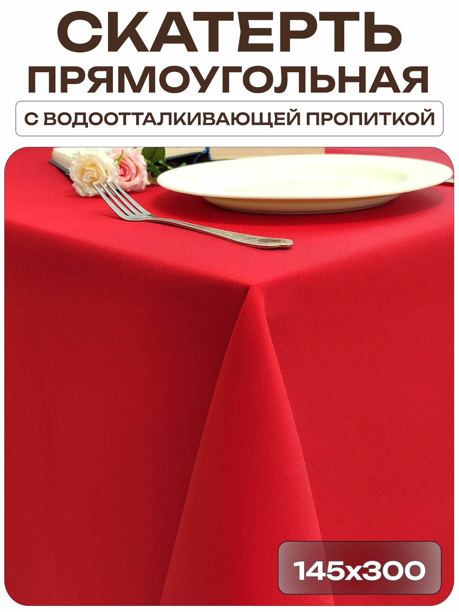 Скатерть 145x300 см. цвет красный без рисунка с пропиткой от загрязнений ткань Грета информация: