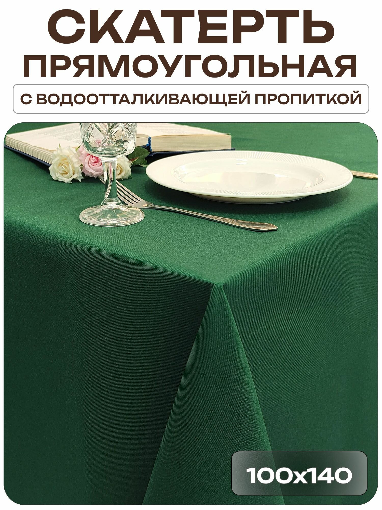 10 цен на Скатерть 100x140 см. цвет зеленый без рисунка с пропиткой от загрязнений ткань Грета