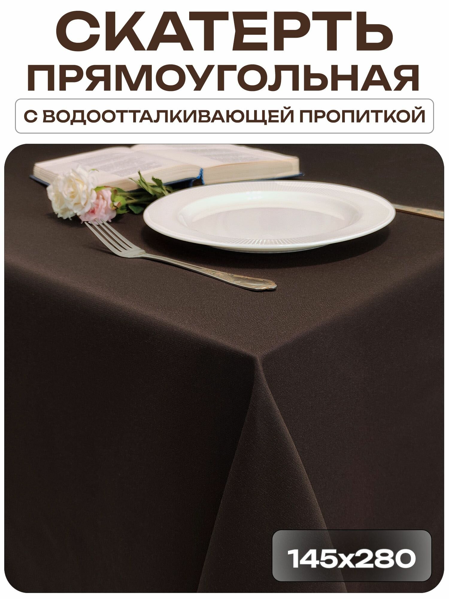 Скатерть 145x280 см. цвет коричневый без рисунка с пропиткой от загрязнений ткань Грета информация: