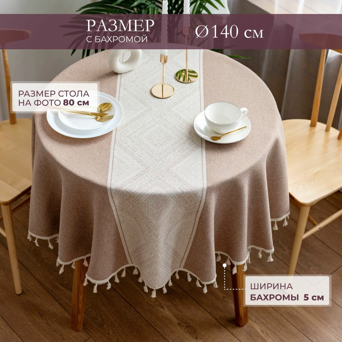 Скатерть на кухонный стол "Сухой букет", круглая на резинке, диаметр 105-120 см, JoyArty