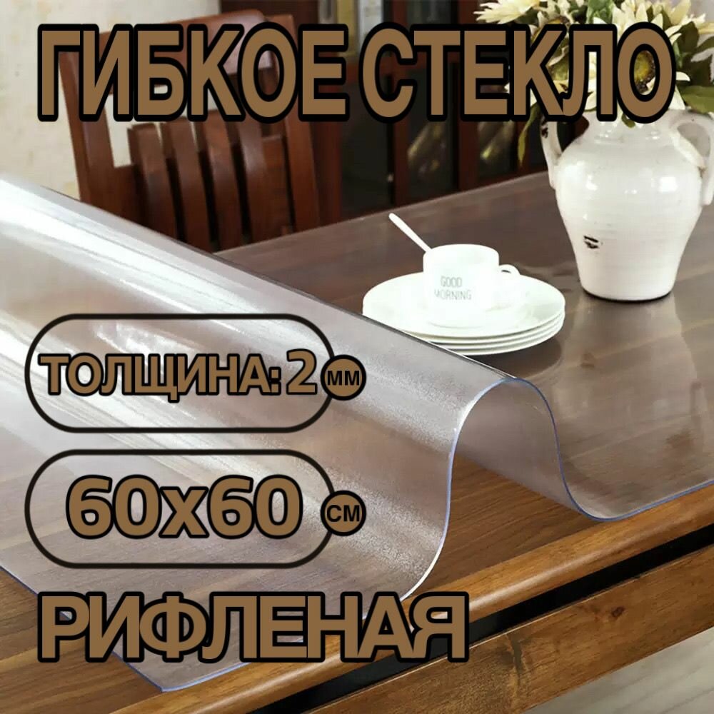 Силиконовая скатерть (гибкое/мягкое стекло). ПВХ скатерть. 60х60 см. Толщина 2 мм. Рифленая информация: