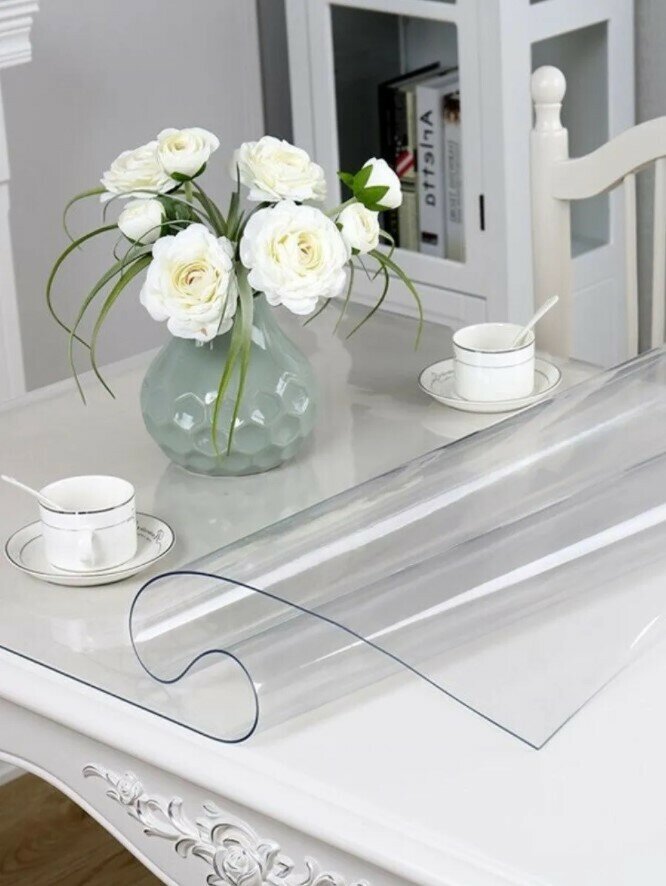 Скатерть прозрачная 140 x 190 см, толщина 0,2 мм (200 мк) / мягкое-гибкое стекло ПВХ