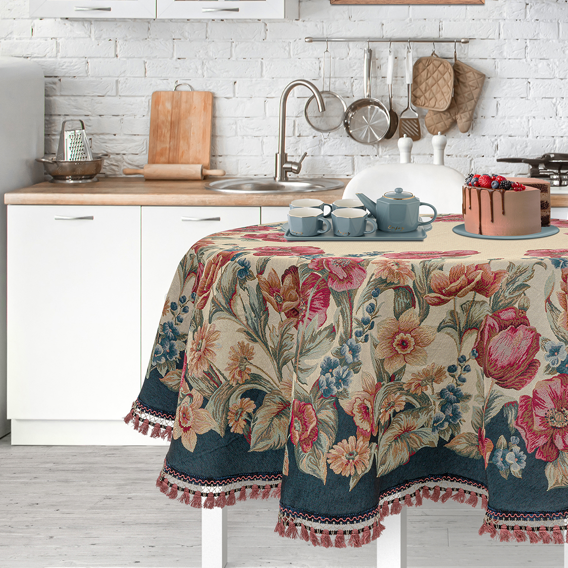 Круглая гобеленовая скатерть 180 см (Италия) с крупными цветами 7 000 ₽