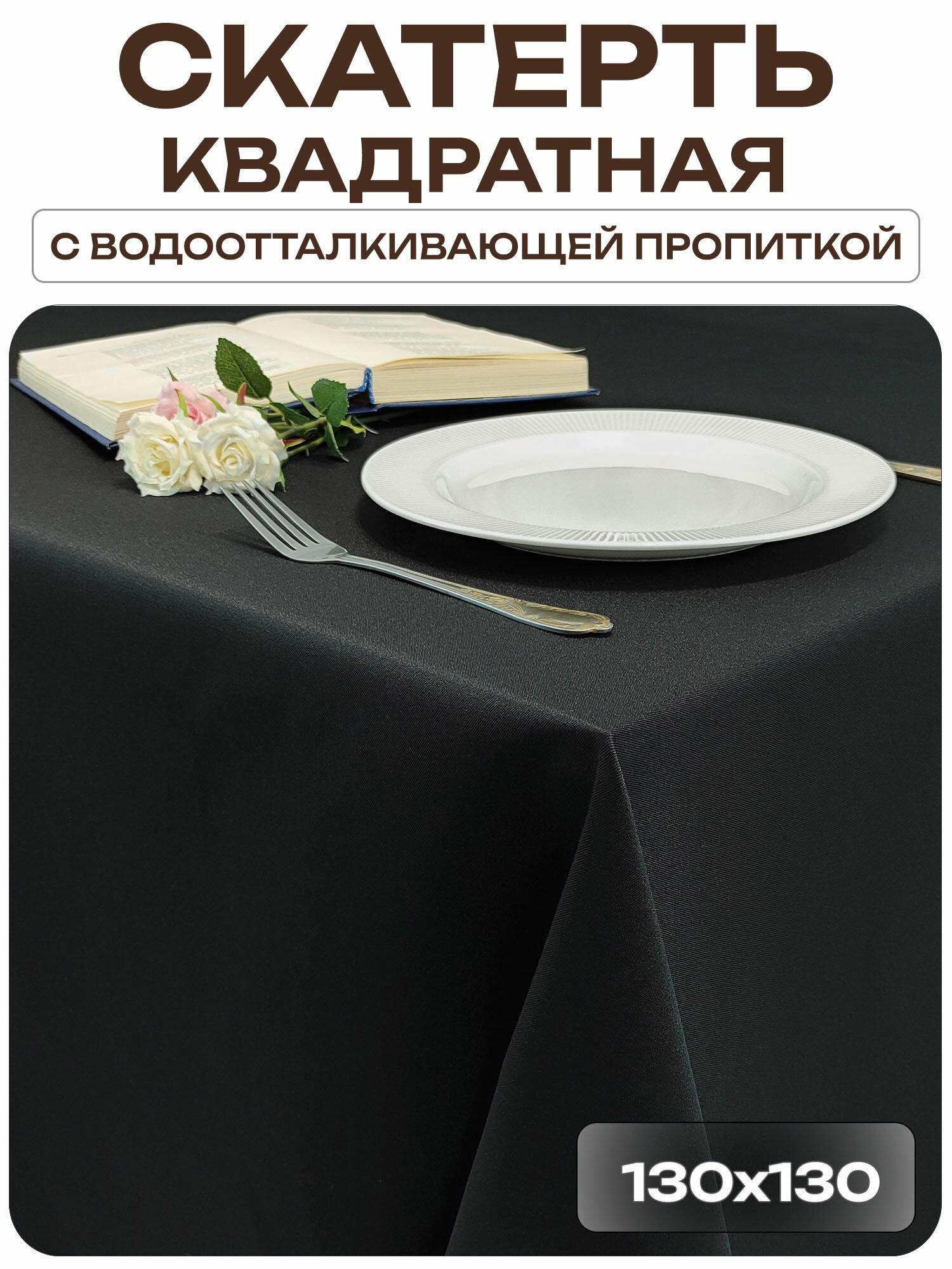 Скатерть 130x130 см. цвет черный без рисунка с пропиткой от загрязнений ткань Грета информация: