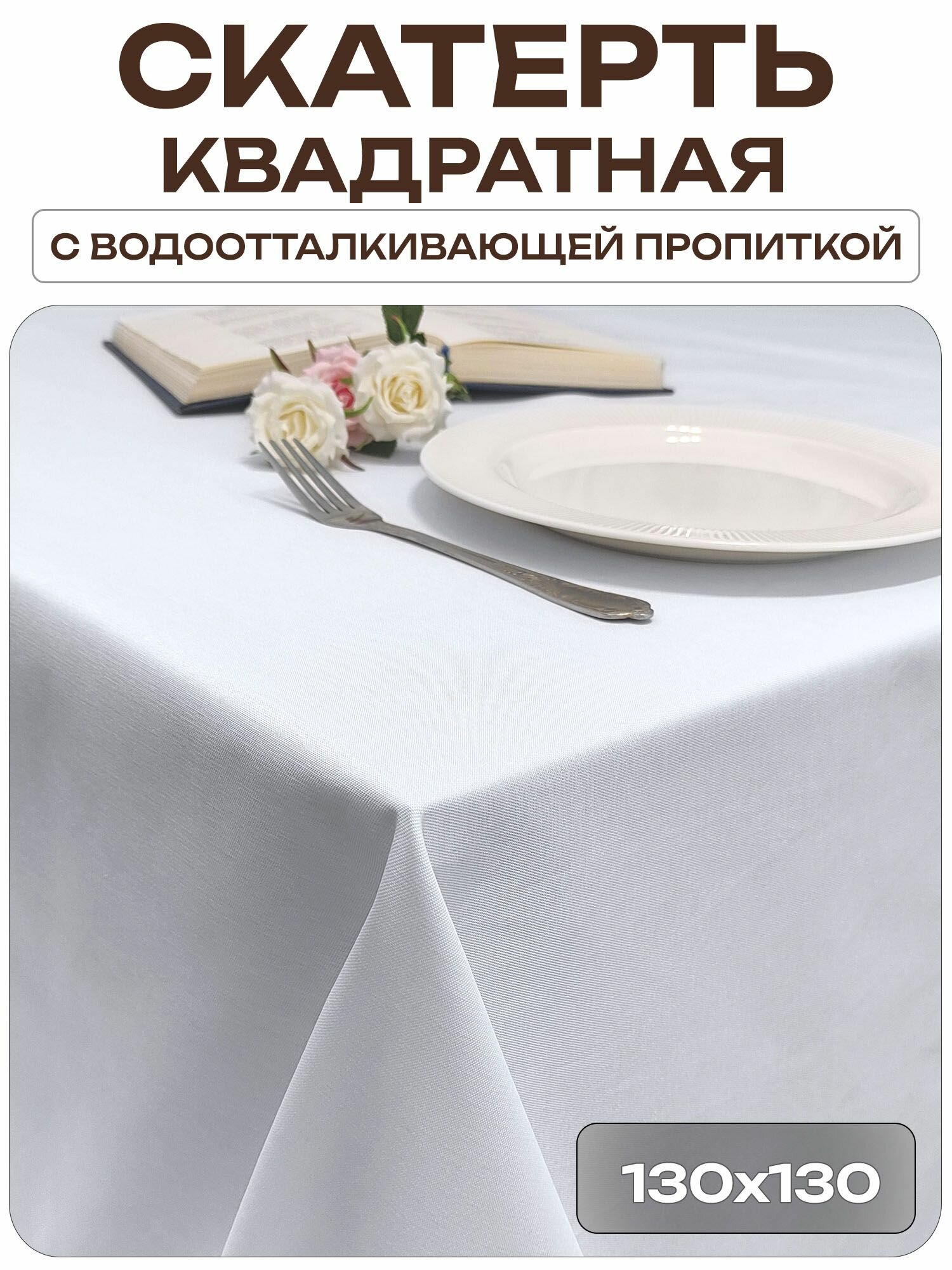 Скатерть 130x130 см. цвет белый без рисунка с пропиткой от загрязнений ткань Грета информация: